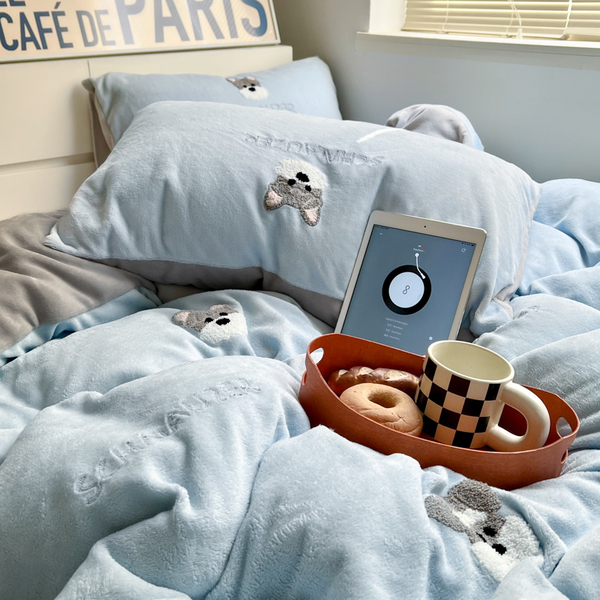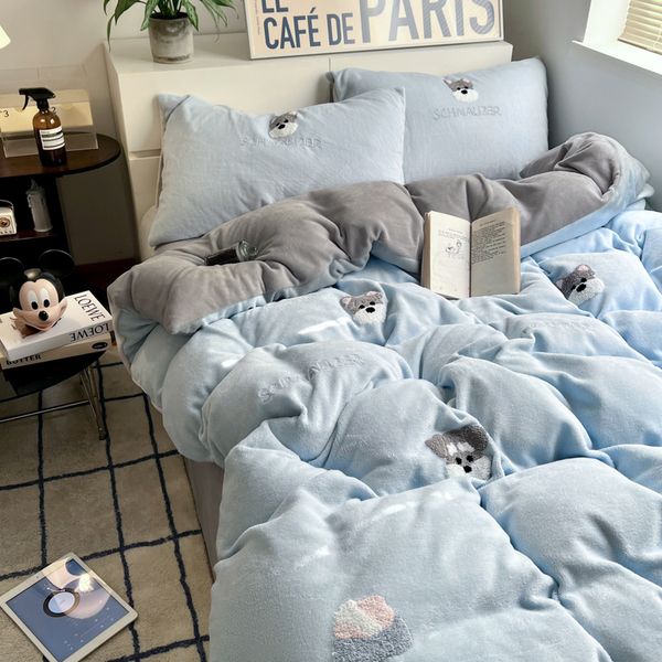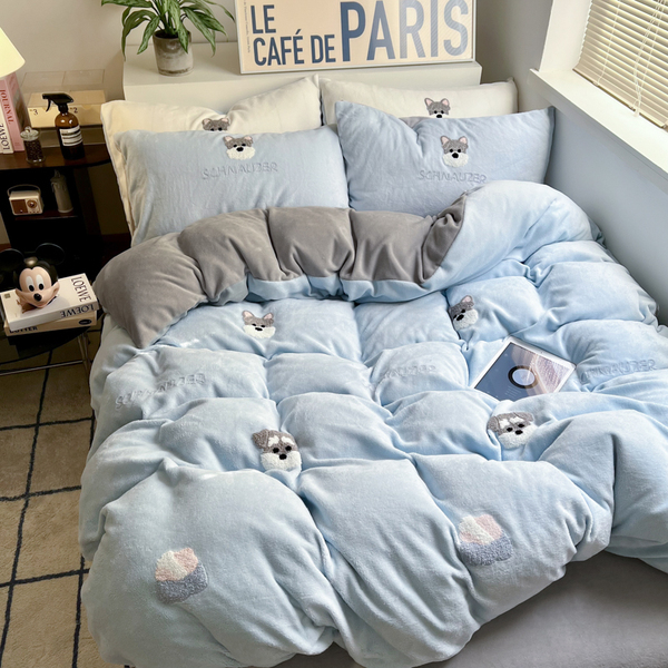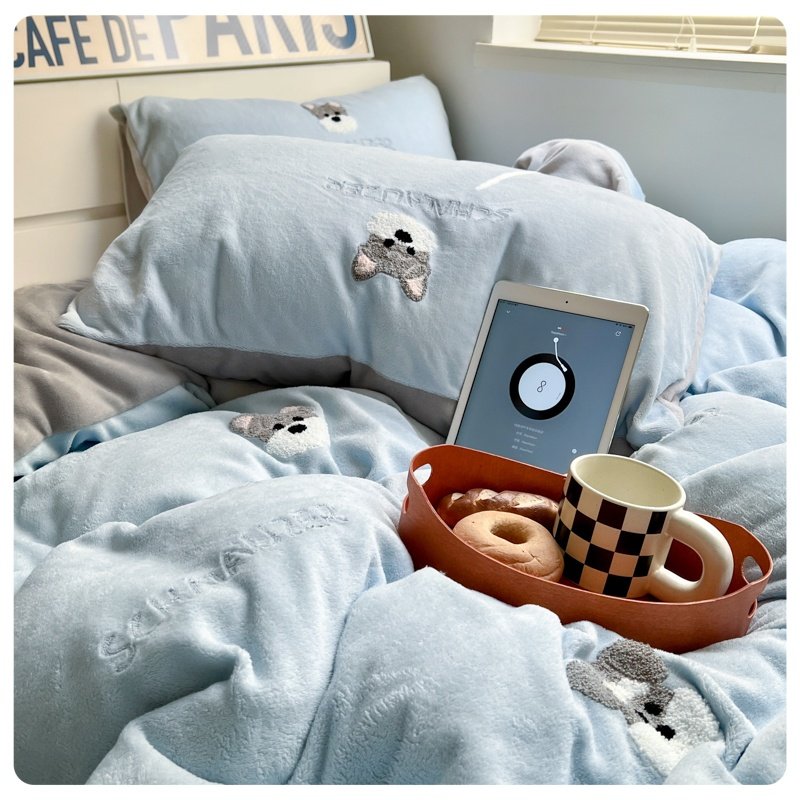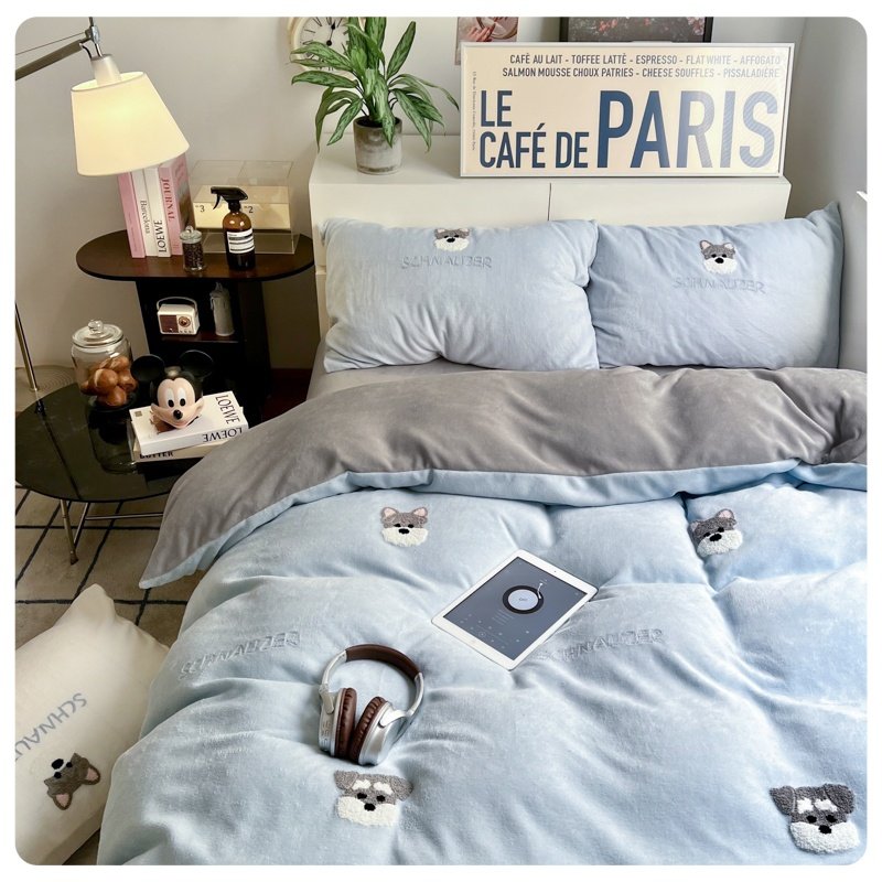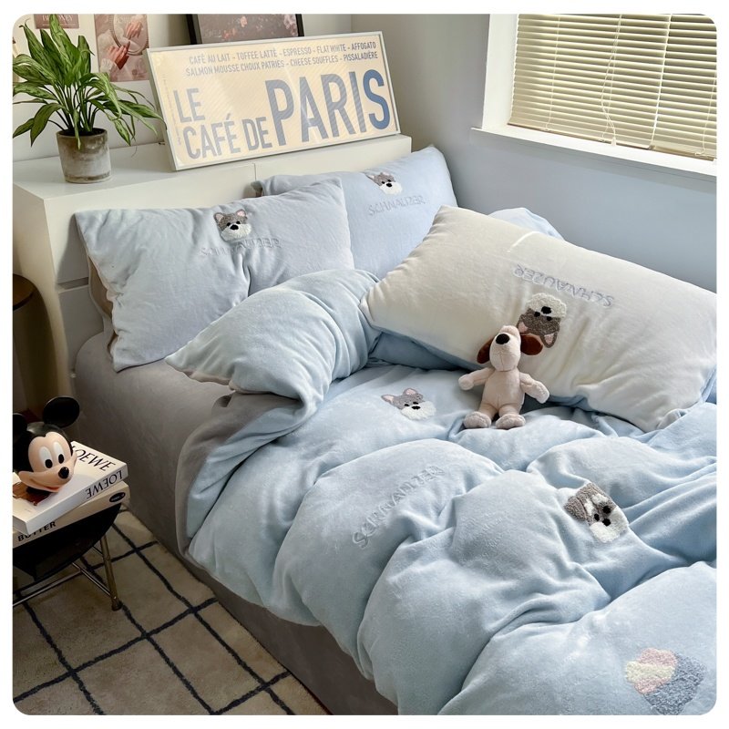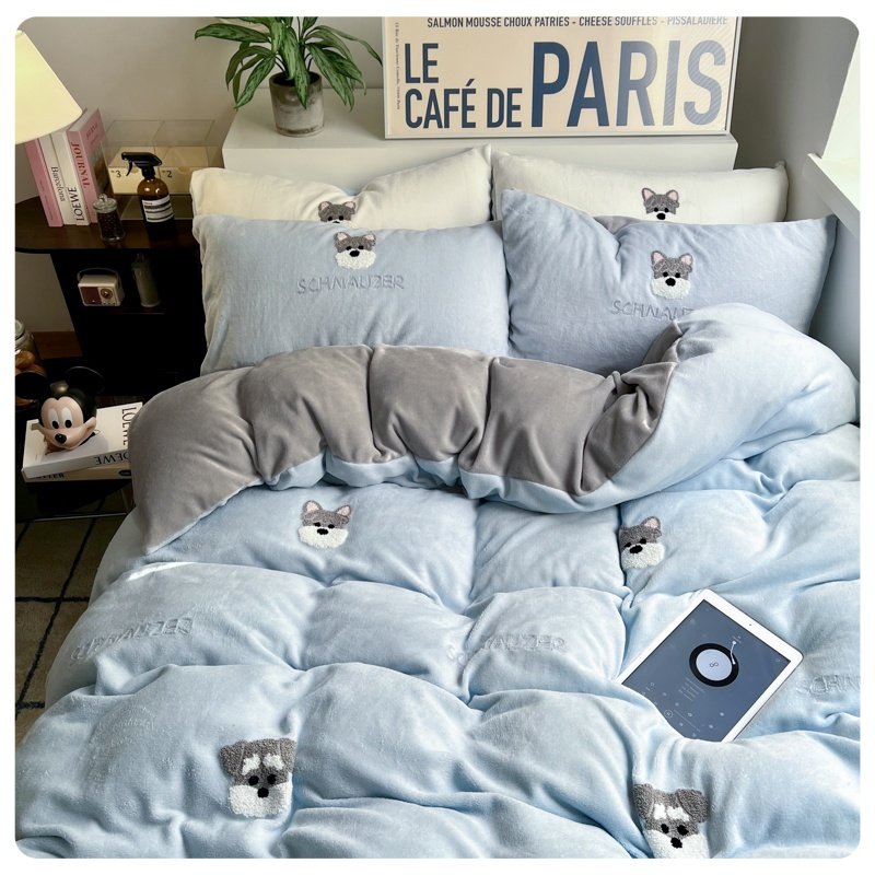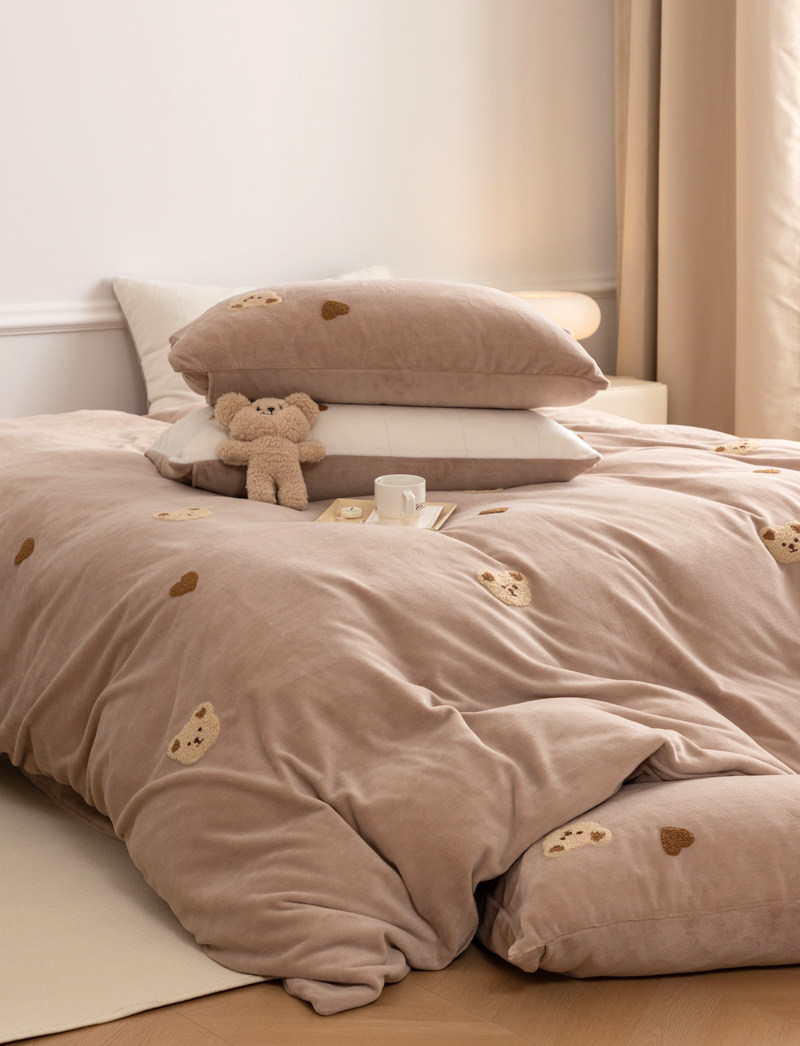 A类加厚保暖毛巾绣牛奶绒四件套珊瑚被套三件冬季1.8m床单笠用品