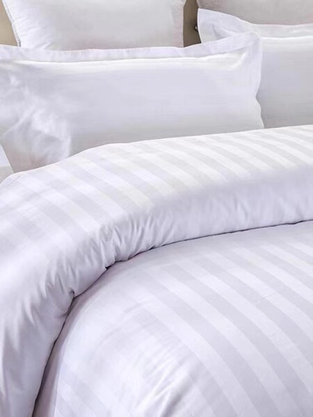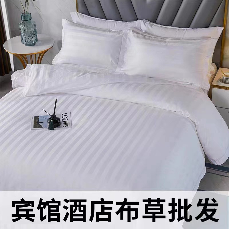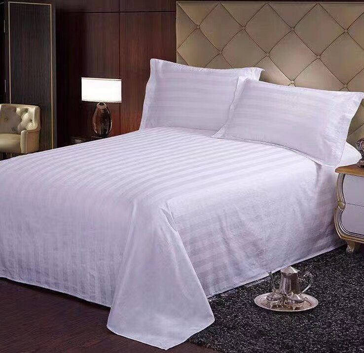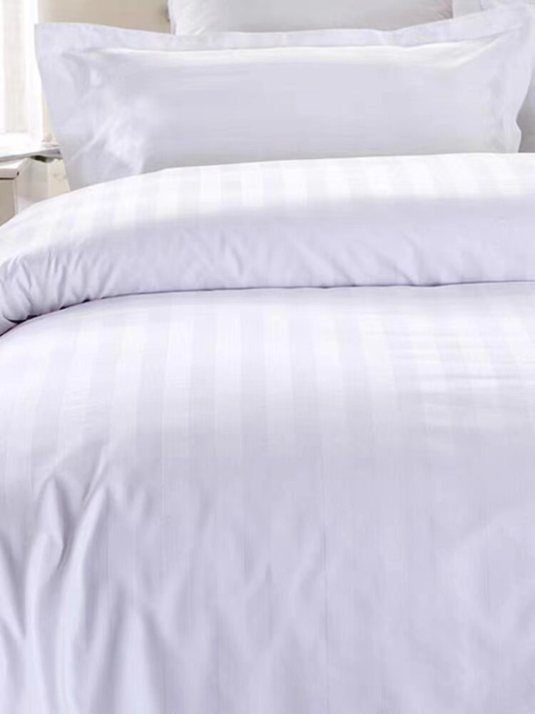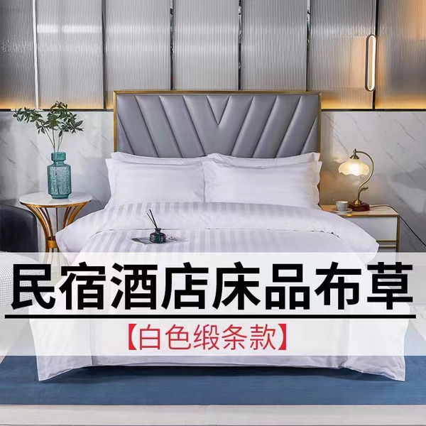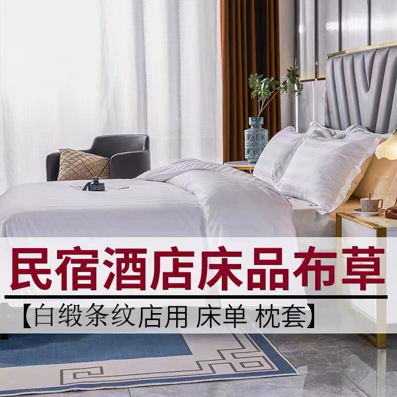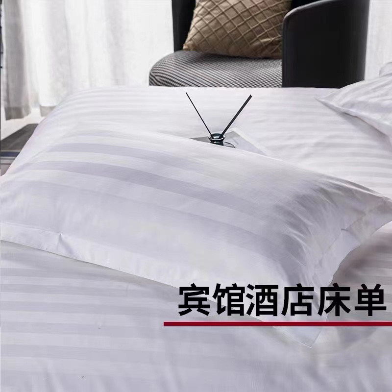 白色缎条宾馆酒店床单美容院洗浴民宿按摩店单件床单枕套布草