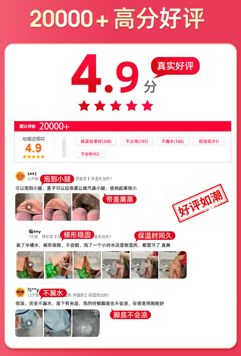 【升级梯形防倒 更稳固】5层锁温,5小时还烫脚!