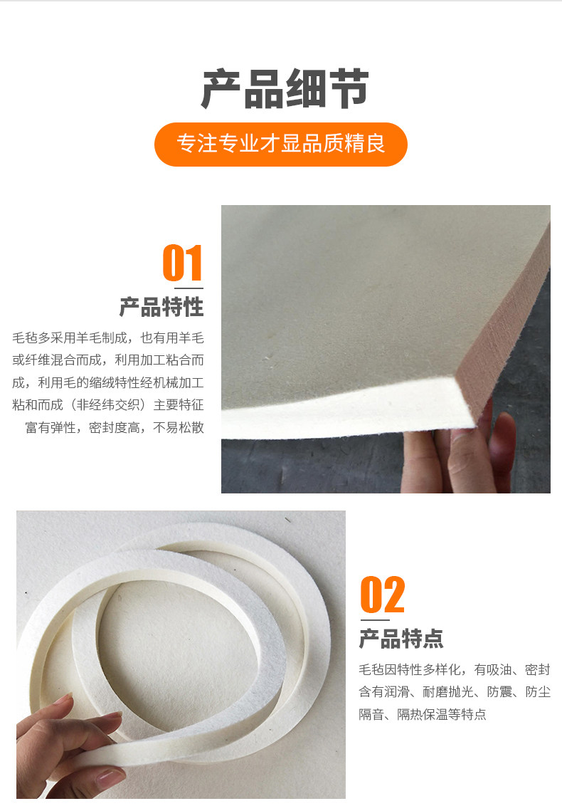 羊毛毡吸油过滤纯羊毛高密度抛光耐磨密封隔音耐高温工业羊毛毡子