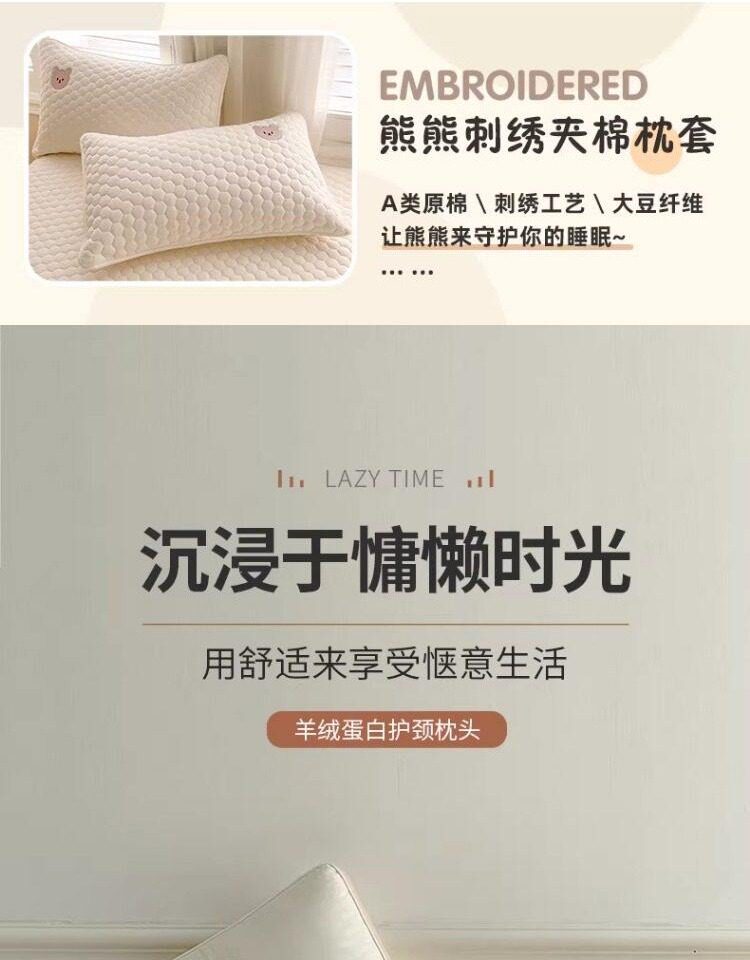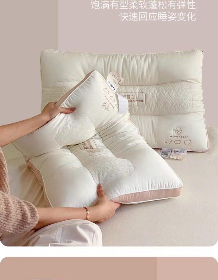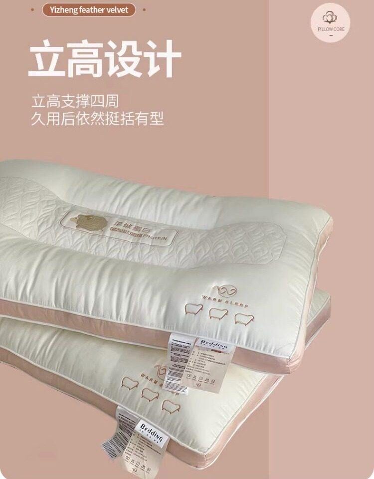 羊绒蛋白护颈枕-浅灰高枕【一对装】