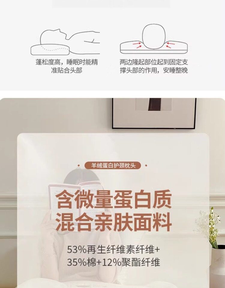 羊绒蛋白护颈枕-浅蓝低枕【一对装】