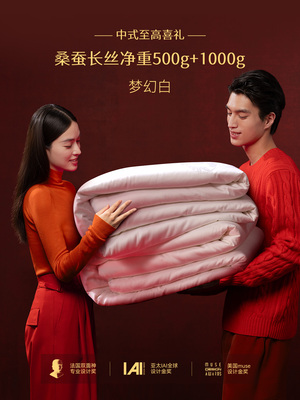 梦幻白500g+1000g蚕丝净重[子母被]赠送抱枕&接亲考卷
