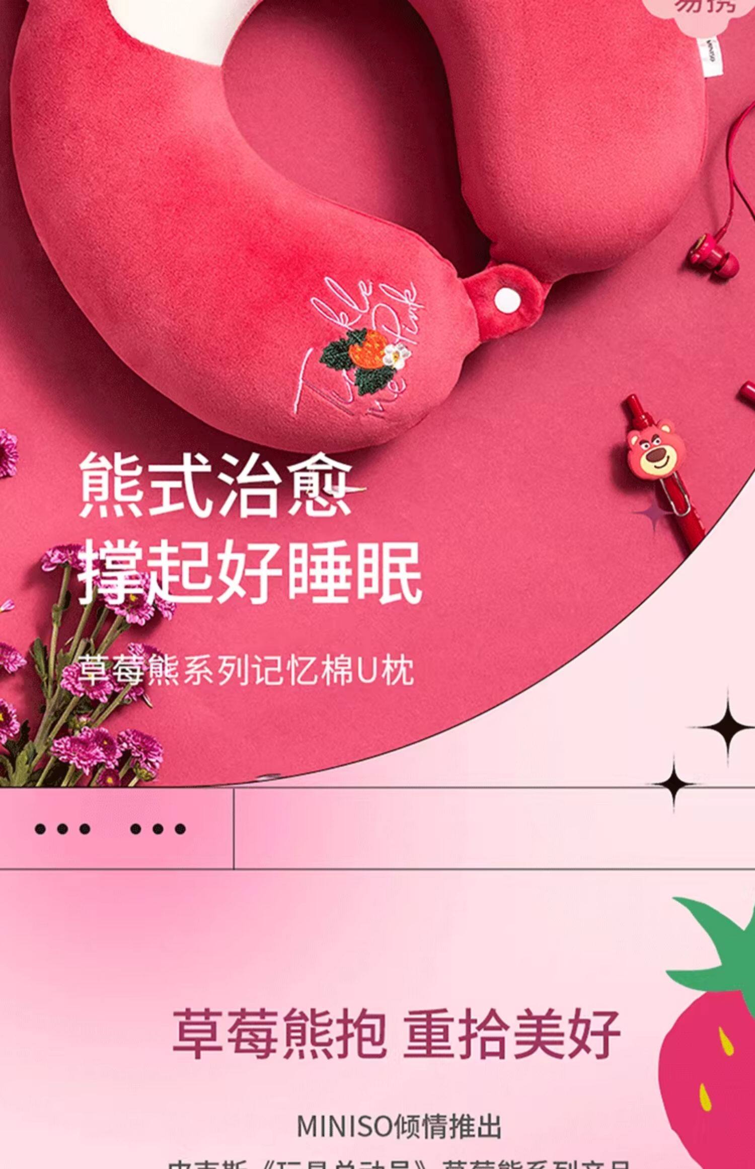 MINISO名创优品u型枕草莓熊u形枕高铁长途车睡觉趴枕脖枕儿童头枕