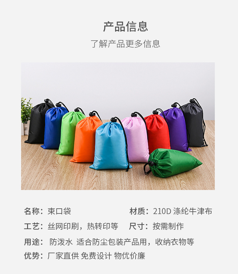 涤纶束口袋尼龙抽绳包拉绳袋牛津布收纳防尘袋衣物整理袋分装袋子