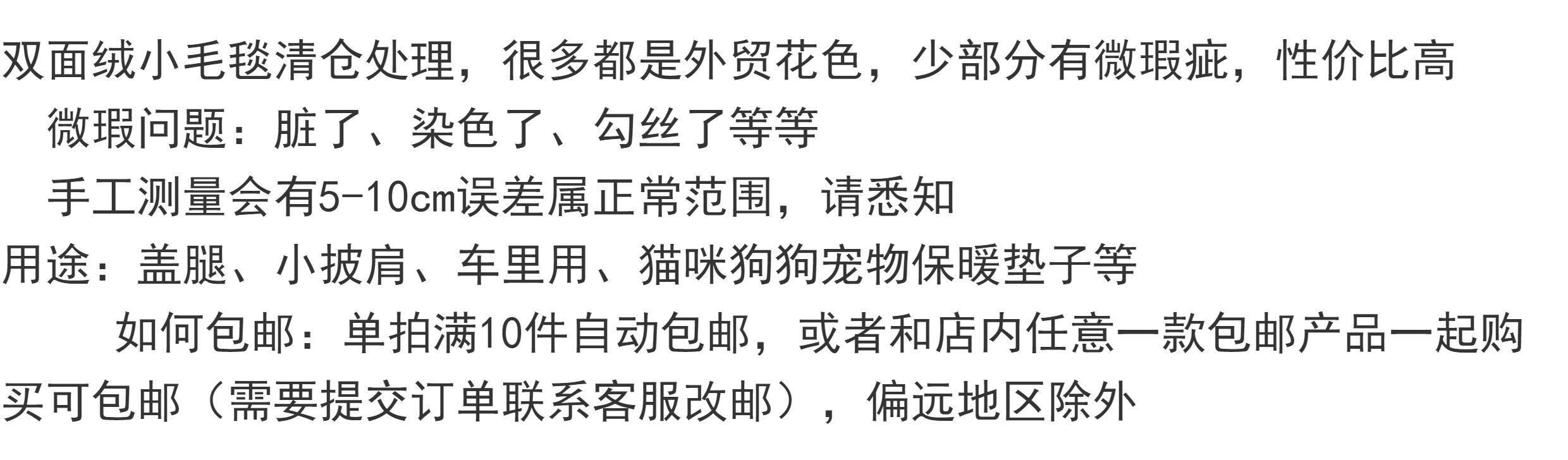 微瑕清仓 珊瑚绒法兰绒小毛毯狗狗猫咪宠物窝保暖睡垫子秋冬加厚
