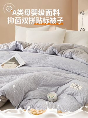超柔提花皱皱纱-双拼大豆被-白拼浅灰【A类母婴级抗菌防螨】