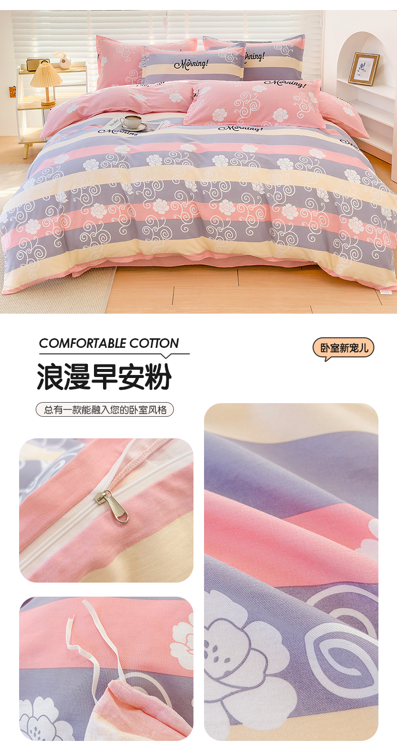 浪漫早安-粉(升级加厚款) (双面全棉 内锁边)