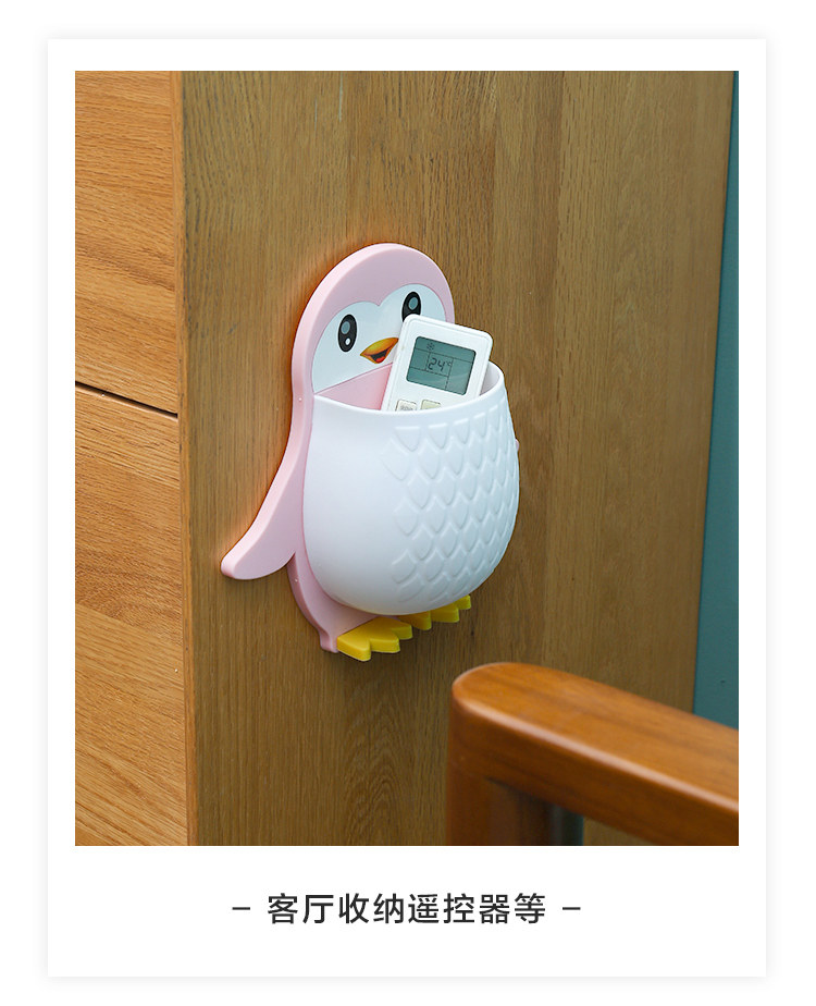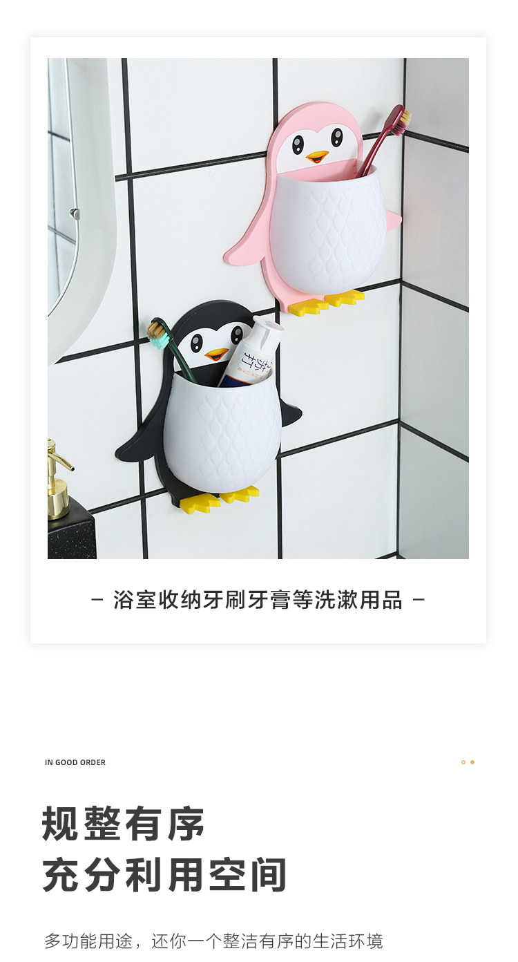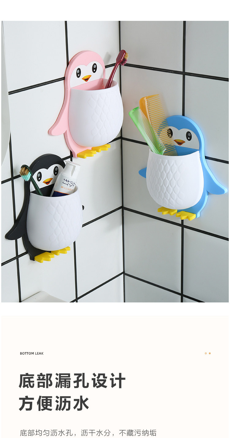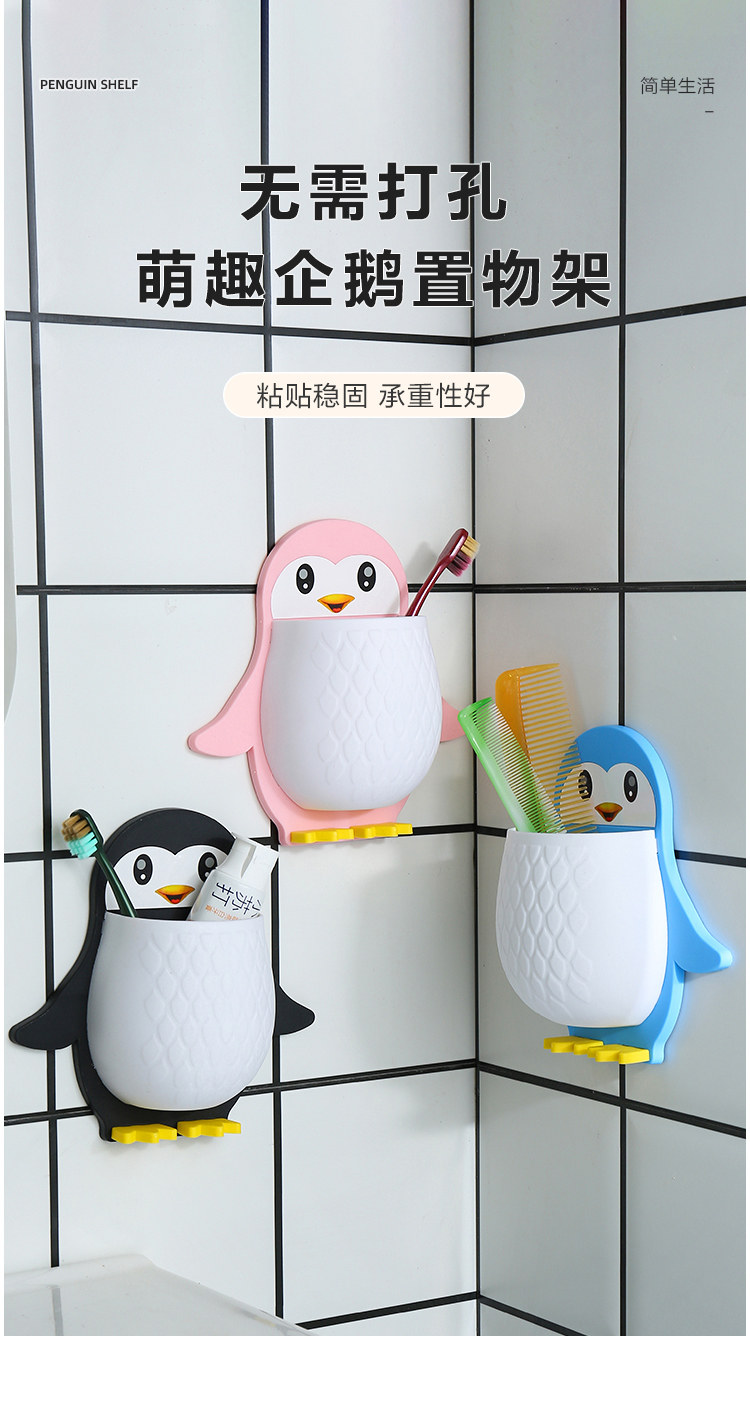 创意卡通企鹅置物架化妆工具整理盒宿舍卫生间牙刷床头手机壁挂收