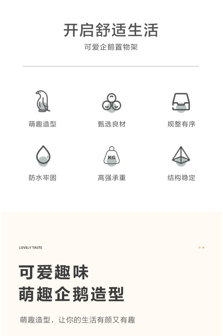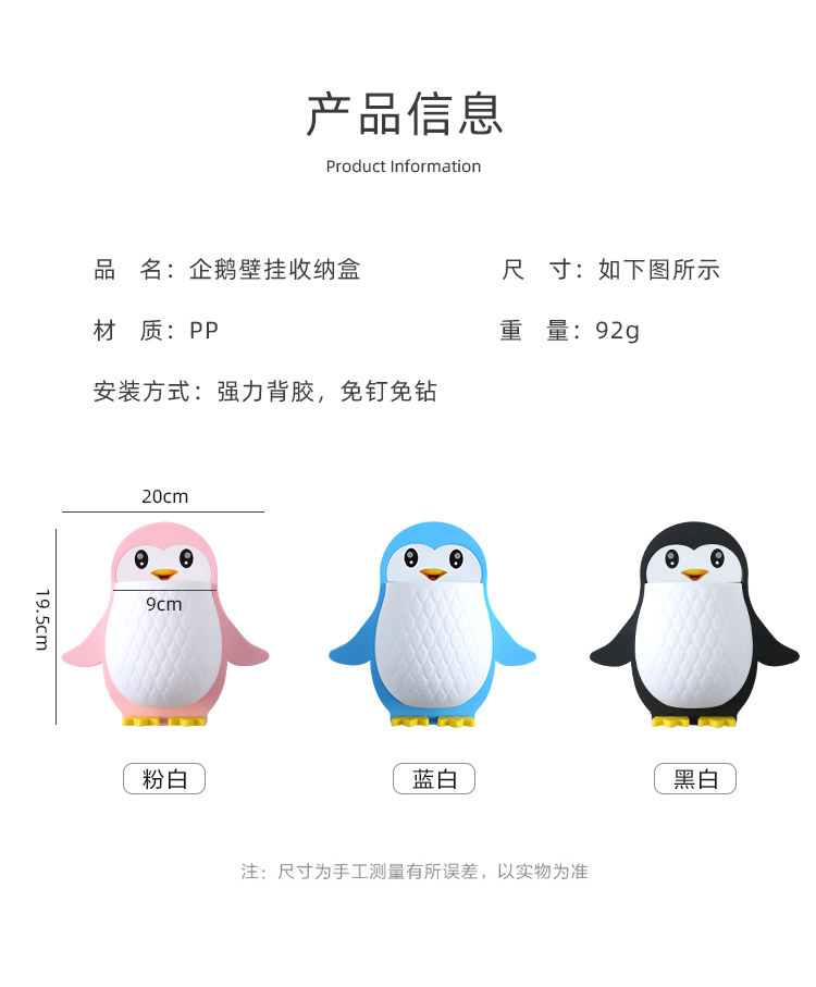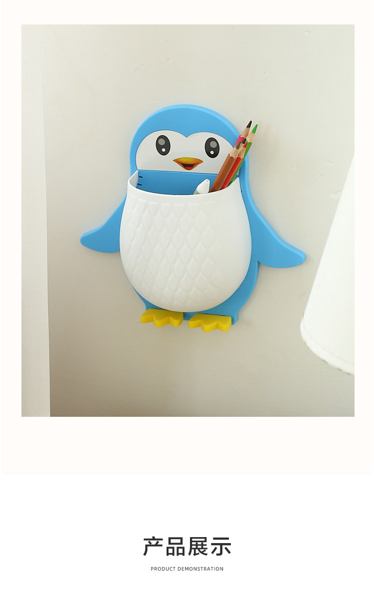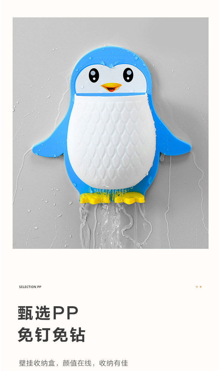 创意卡通企鹅置物架化妆工具整理盒宿舍卫生间牙刷床头手机壁挂收