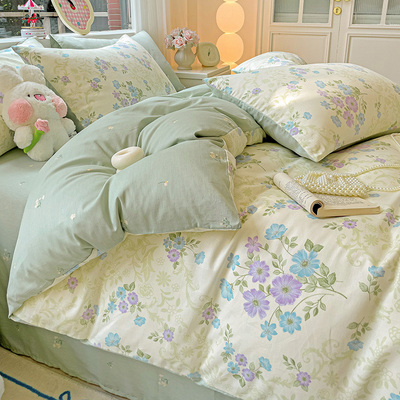 洁丽雅四件套纯棉全棉2025新款被套床单床品床笠款宿舍床上三件套