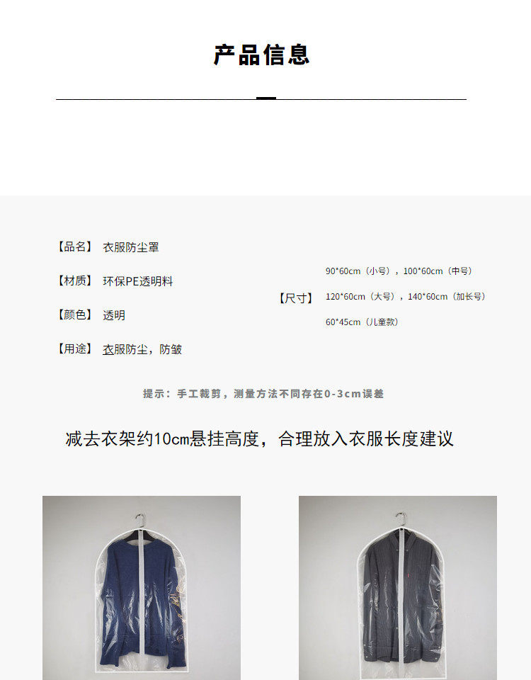 衣服防尘罩挂衣袋衣物防尘套西装挂式长款羽绒服家用透明大衣袋子