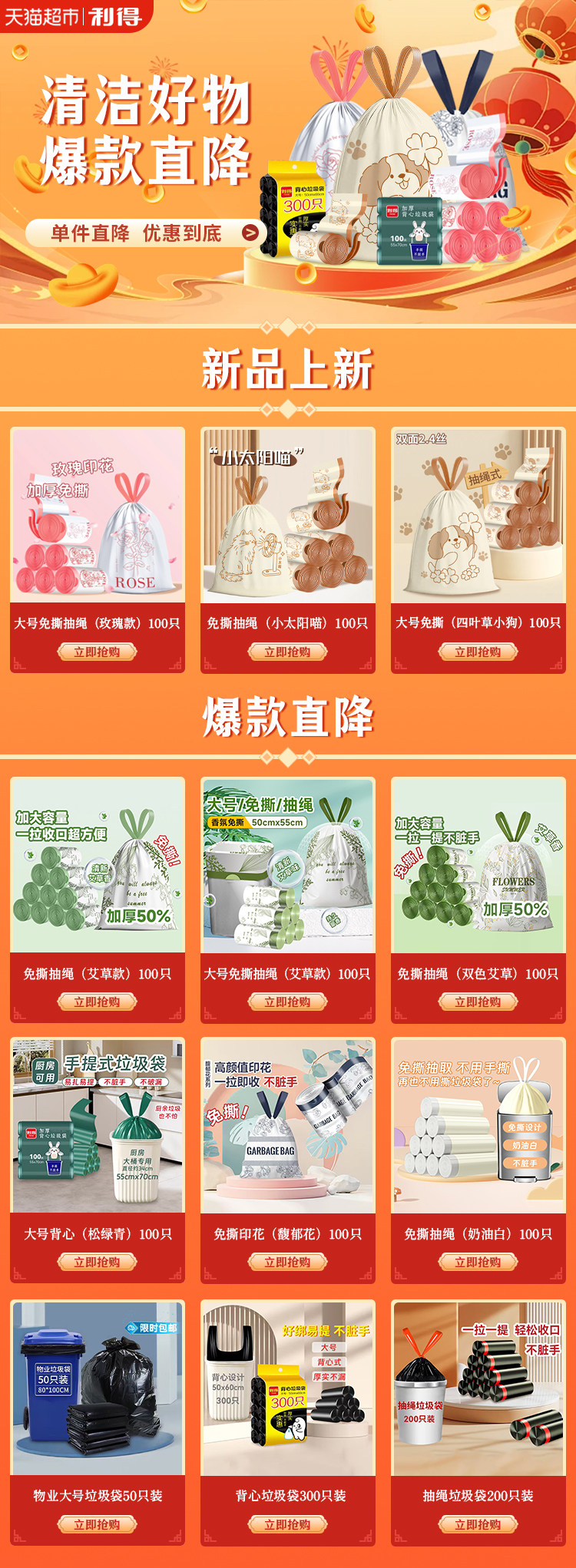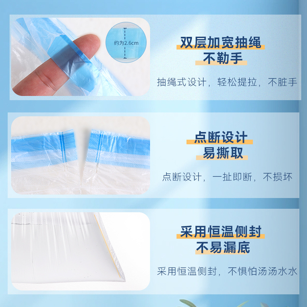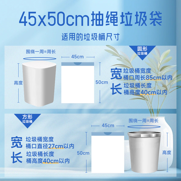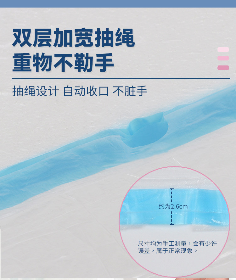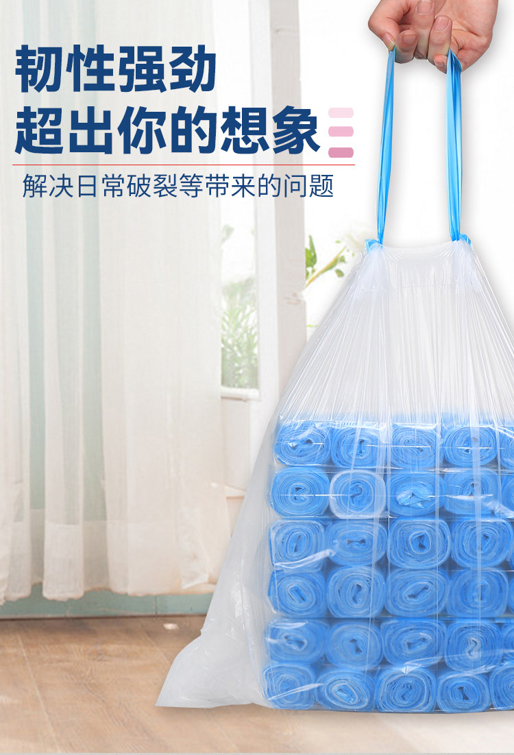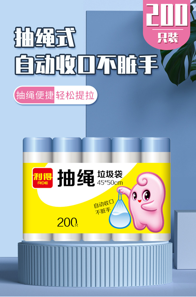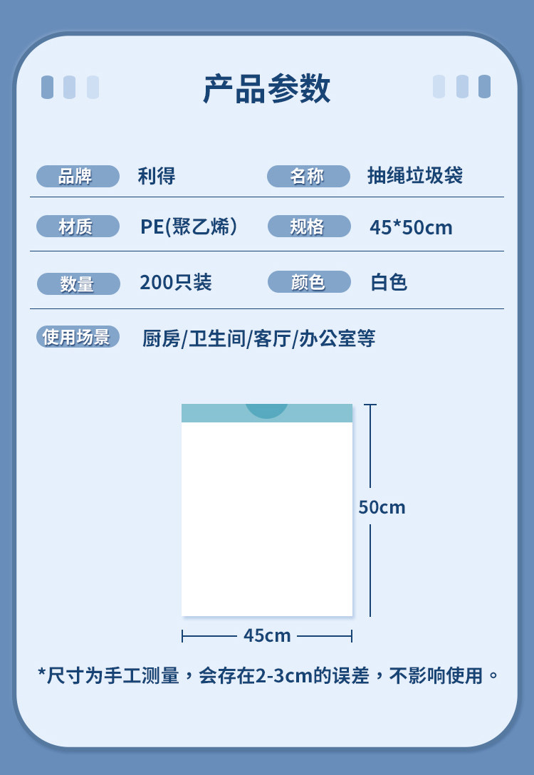 利得抽绳垃圾袋穿绳手提式加厚钢带白色家用中号45*50*200只*1包