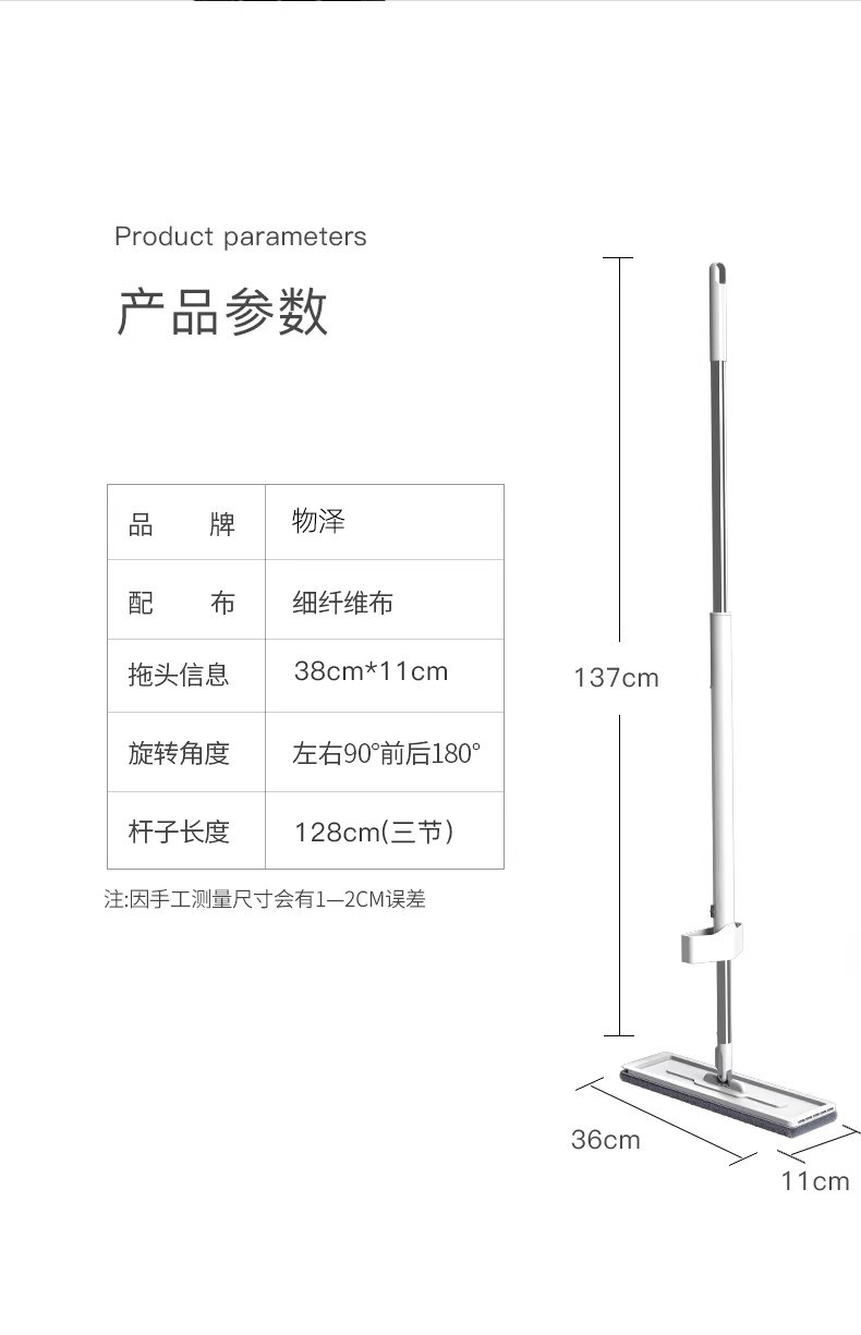 掌柜推荐❤38cm加大面板+共2块加厚拖布