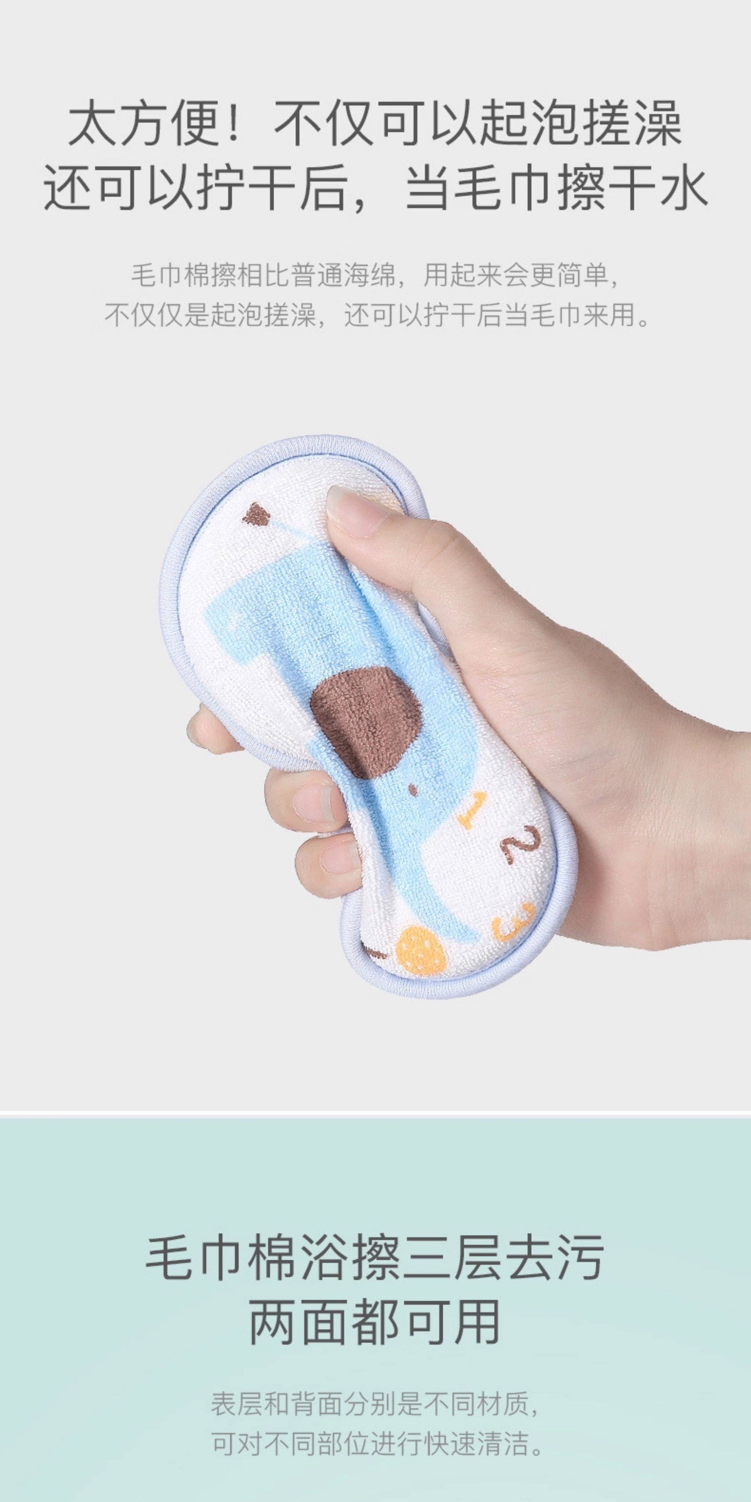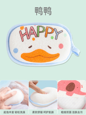 婴儿童:纯棉搓泡泡海绵浴擦-鸭鸭 粗细双面
