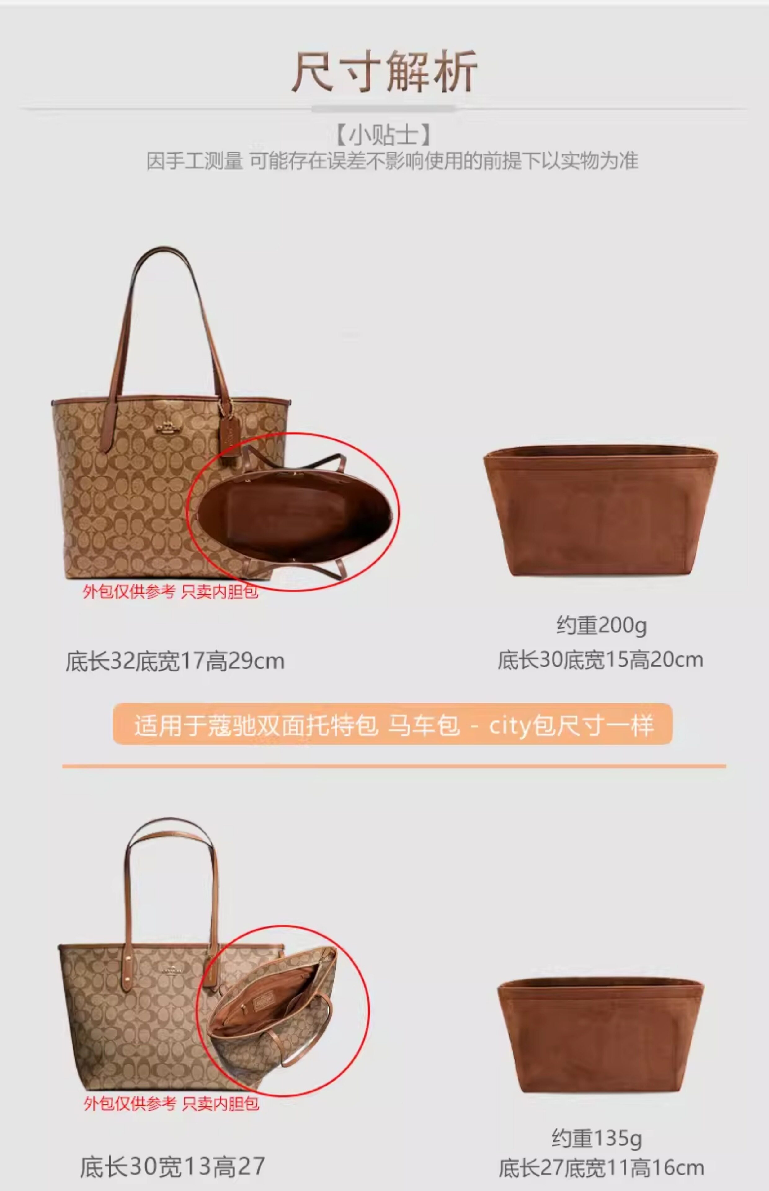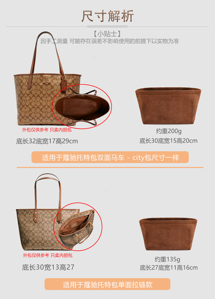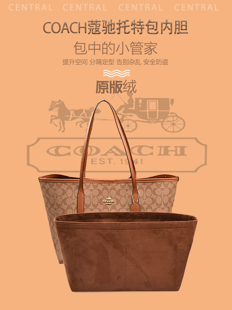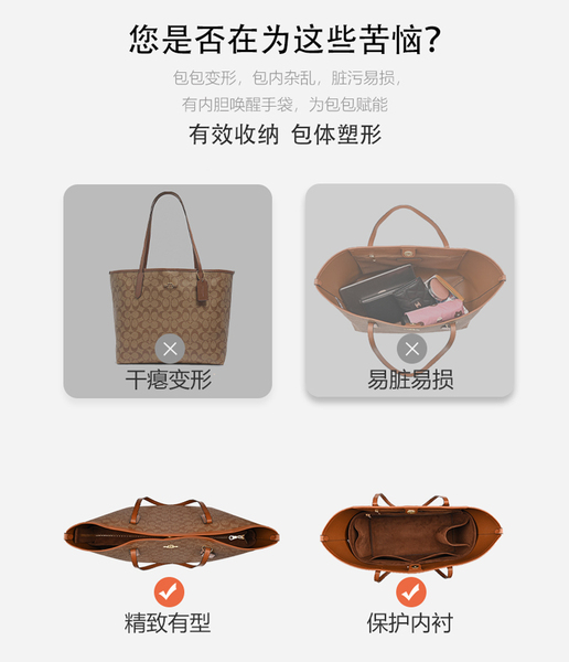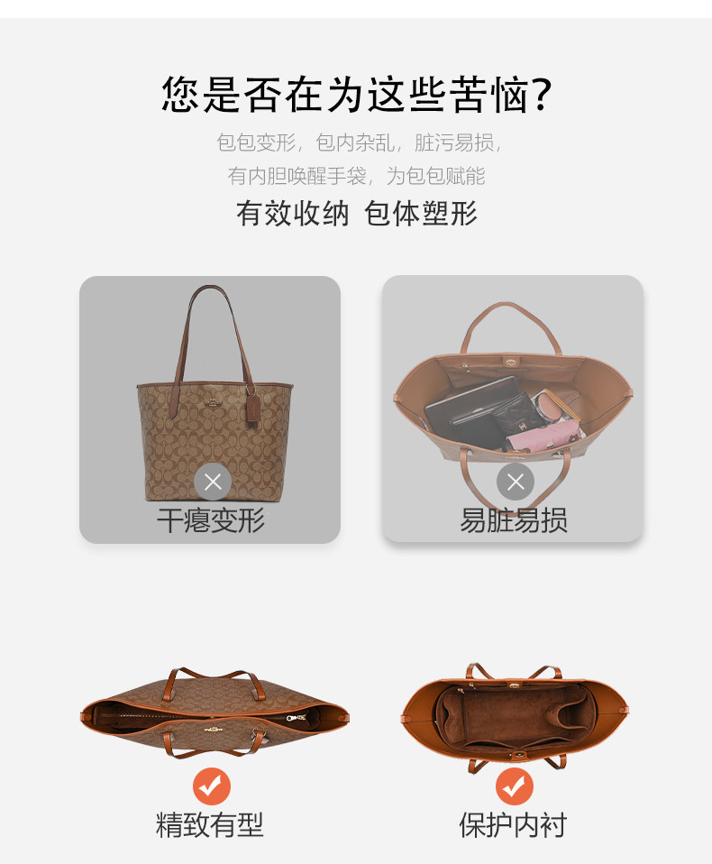 适用COACH蔻驰Central托特包内胆包妈咪包中包收纳包撑型内衬内袋
