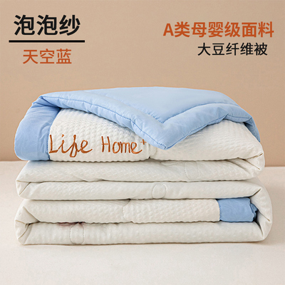 行业顶配超柔大豆被-天空蓝-A类泡泡纱面料