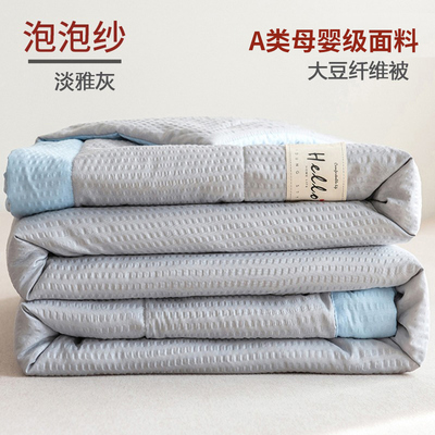 行业顶配超柔大豆被-淡雅灰-A类泡泡纱面料.
