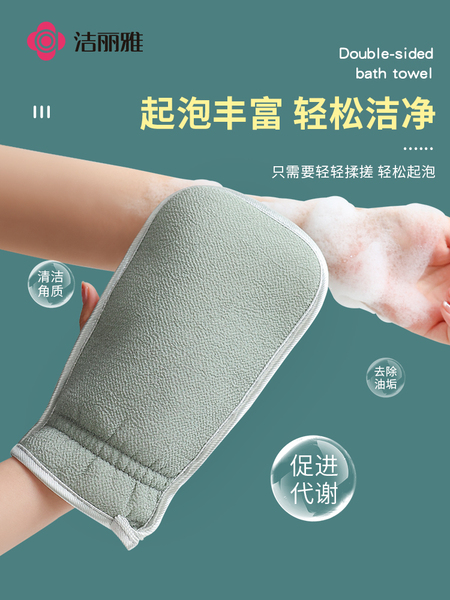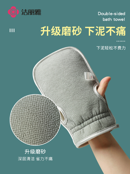 洁丽雅搓澡巾搓澡神器家用搓泥手套男女士专用无痛后背粗砂洗澡巾