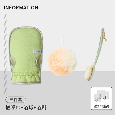 绿色【搓澡巾+浴刷+浴球】