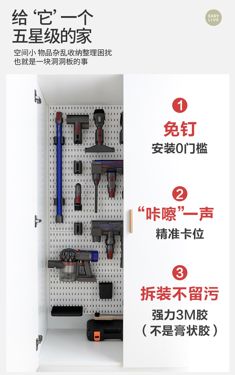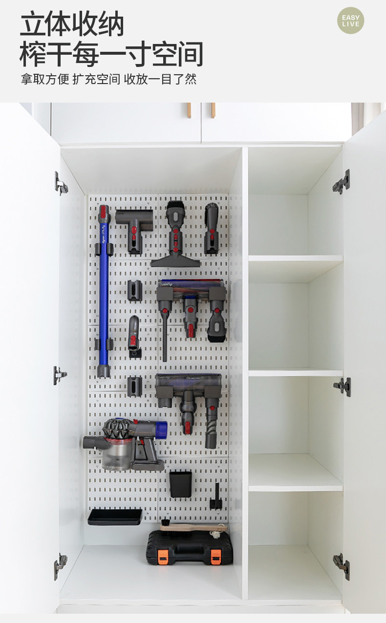 墙上置物工具柜适配戴森吸尘器收纳架免打孔洞洞板配件储物收纳柜