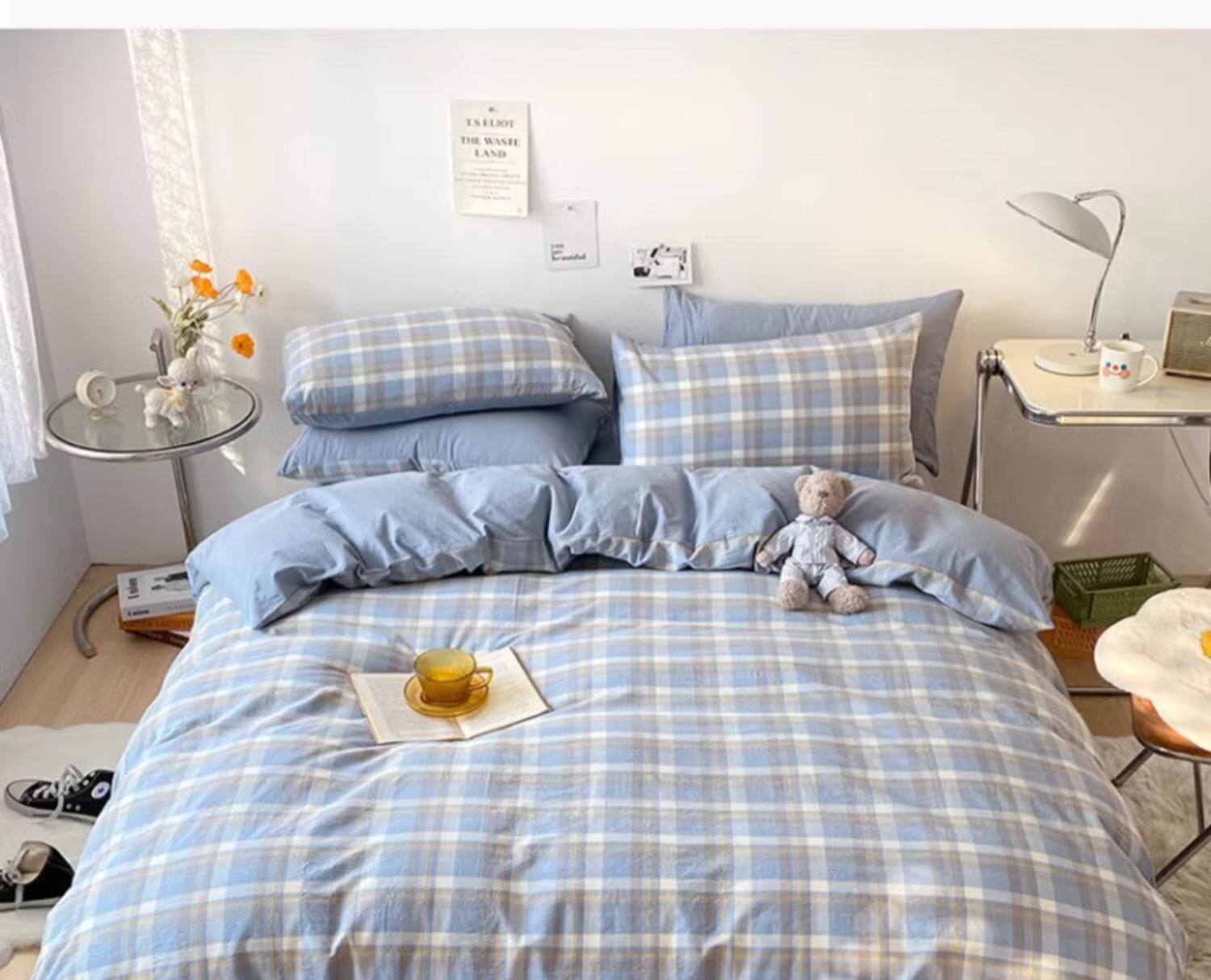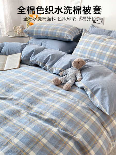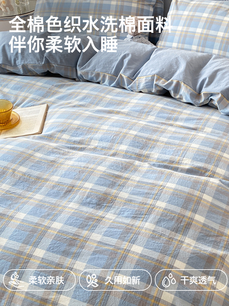 蓝小格【精梳新疆全棉 水洗工艺】