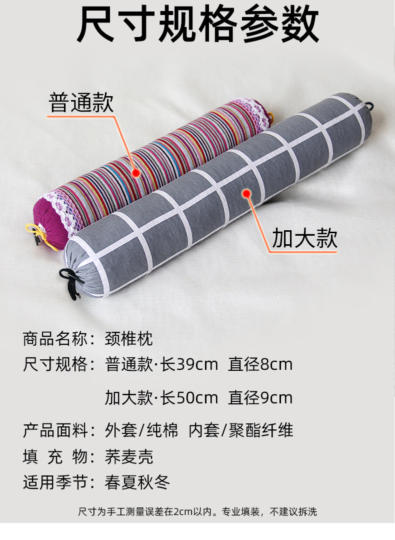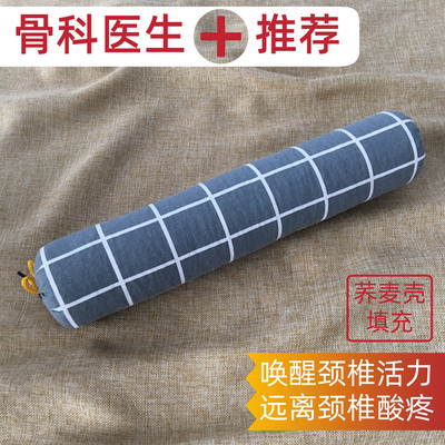 【大号】方格灰【荞麦壳圆柱颈椎枕】