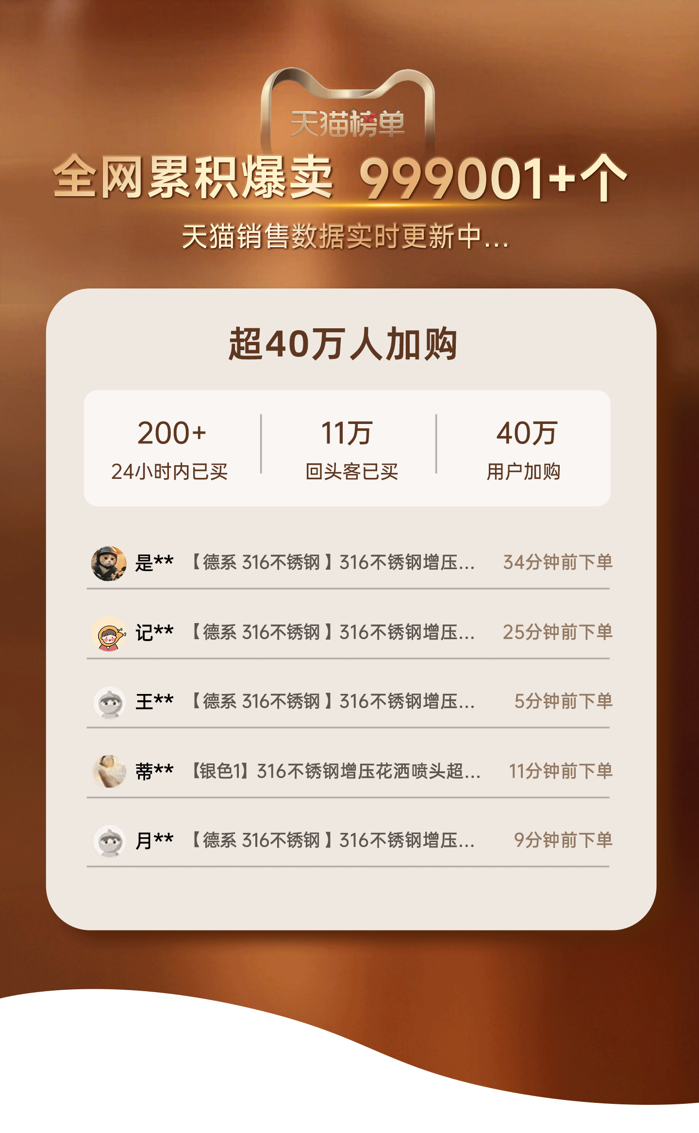 三档出水【升级316精钢】银色★超强增压★30年质保
