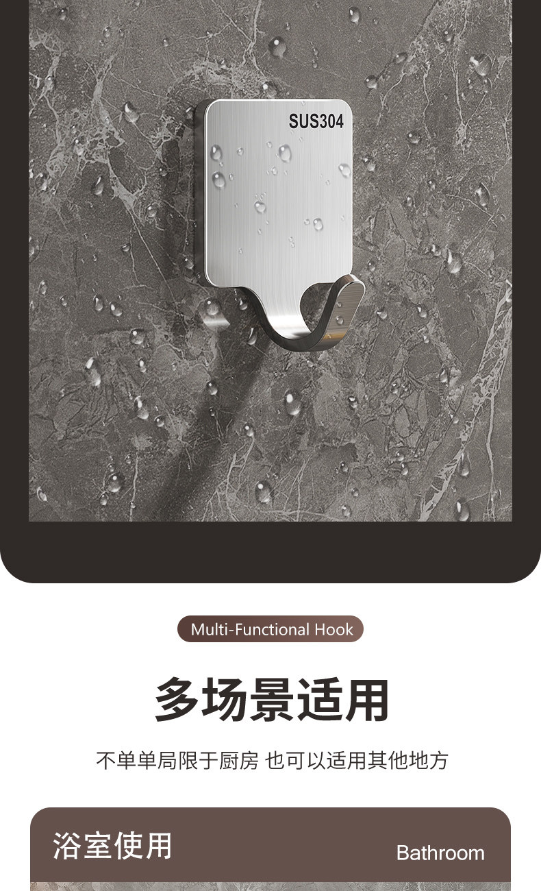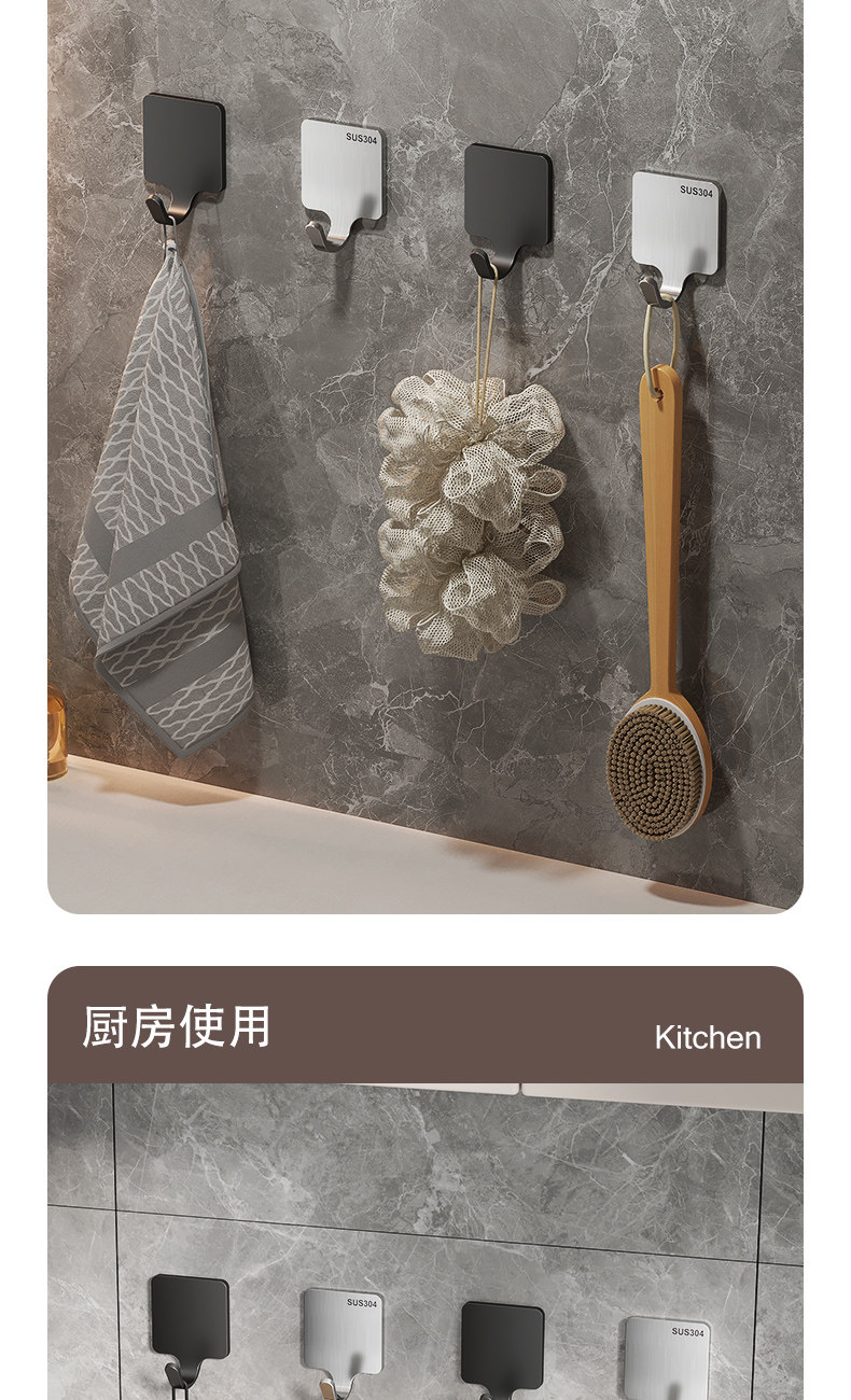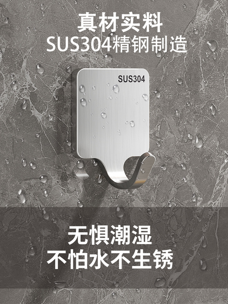 304不锈钢挂钩强力粘胶免打孔承重厨房浴室门后贴墙壁上无痕粘钩