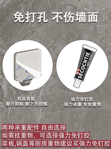 特厚不锈钢烤漆【3个装】枪灰色 配强力免钉胶 挂重物推荐