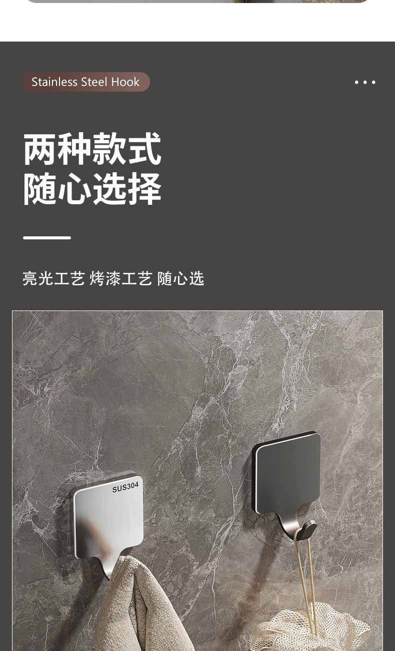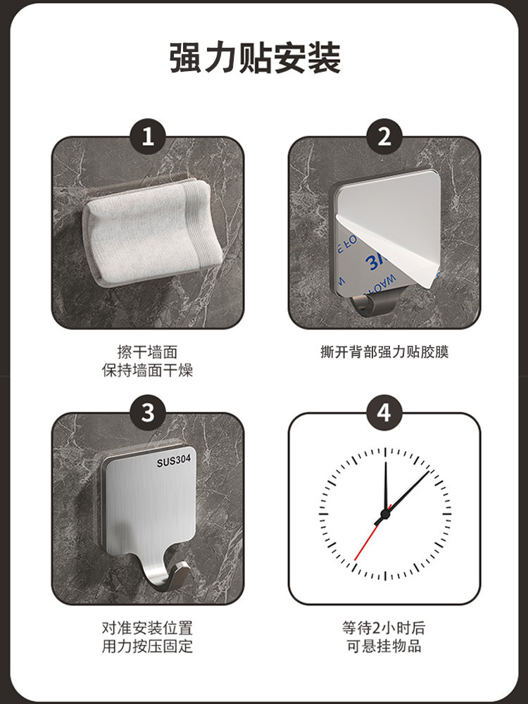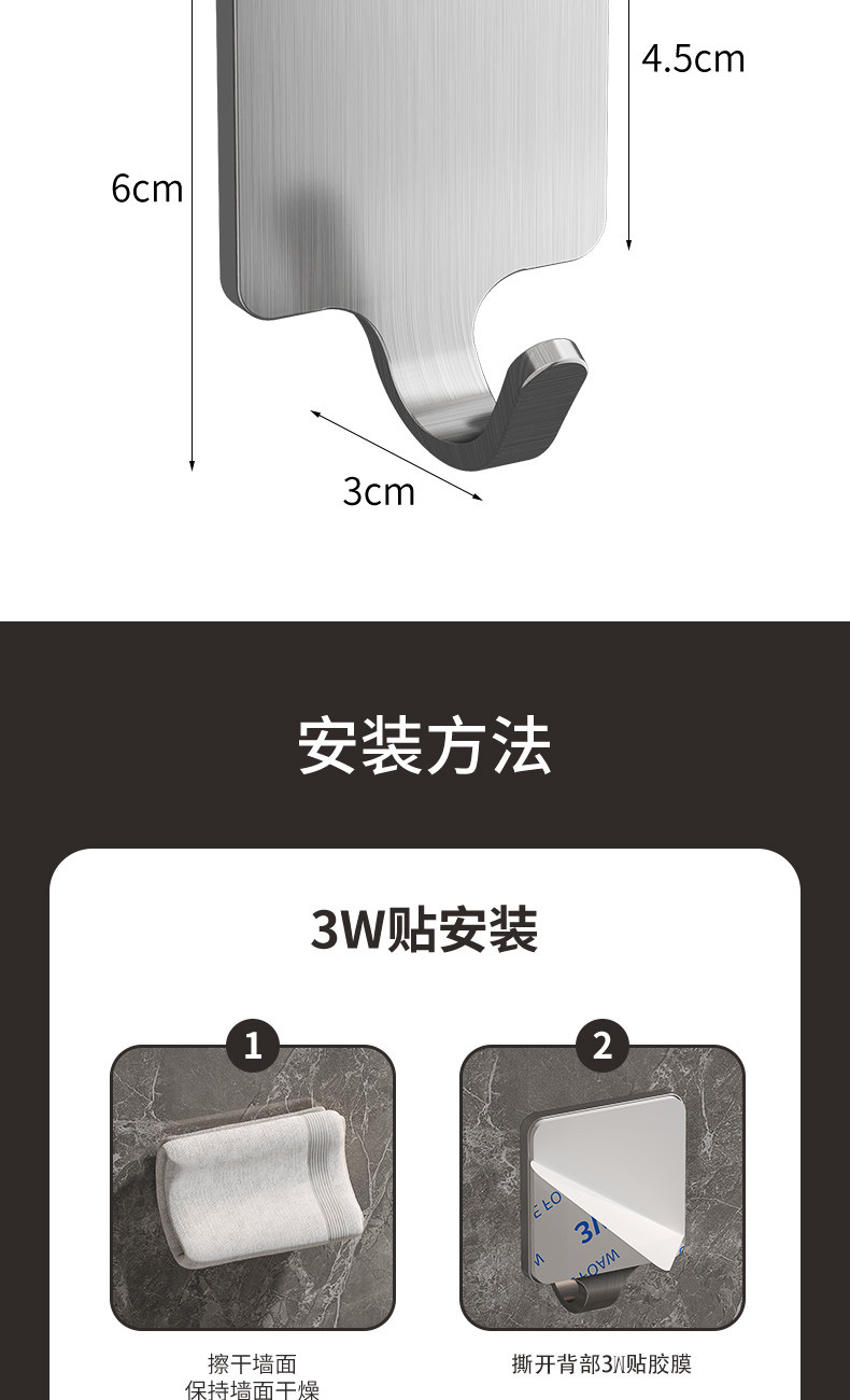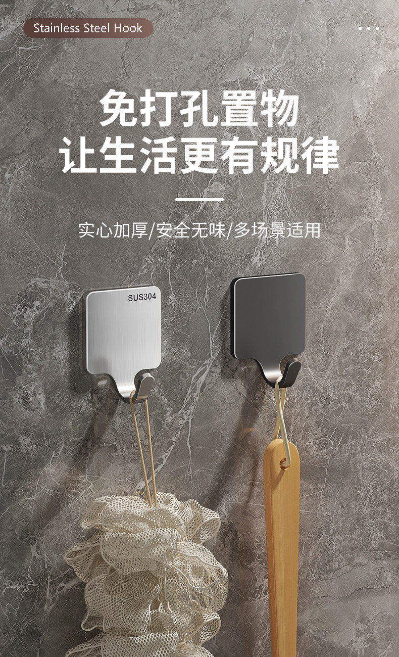 特厚304不锈钢【3个装】 配双面背胶贴 撕开即贴