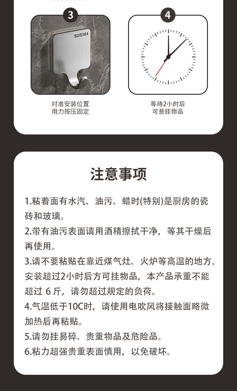 特厚304不锈钢【3个装】 配强力免钉胶 挂重物推荐