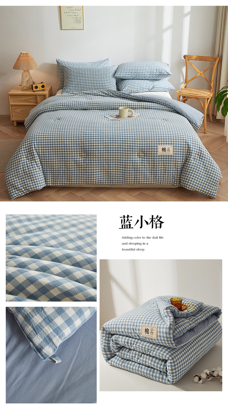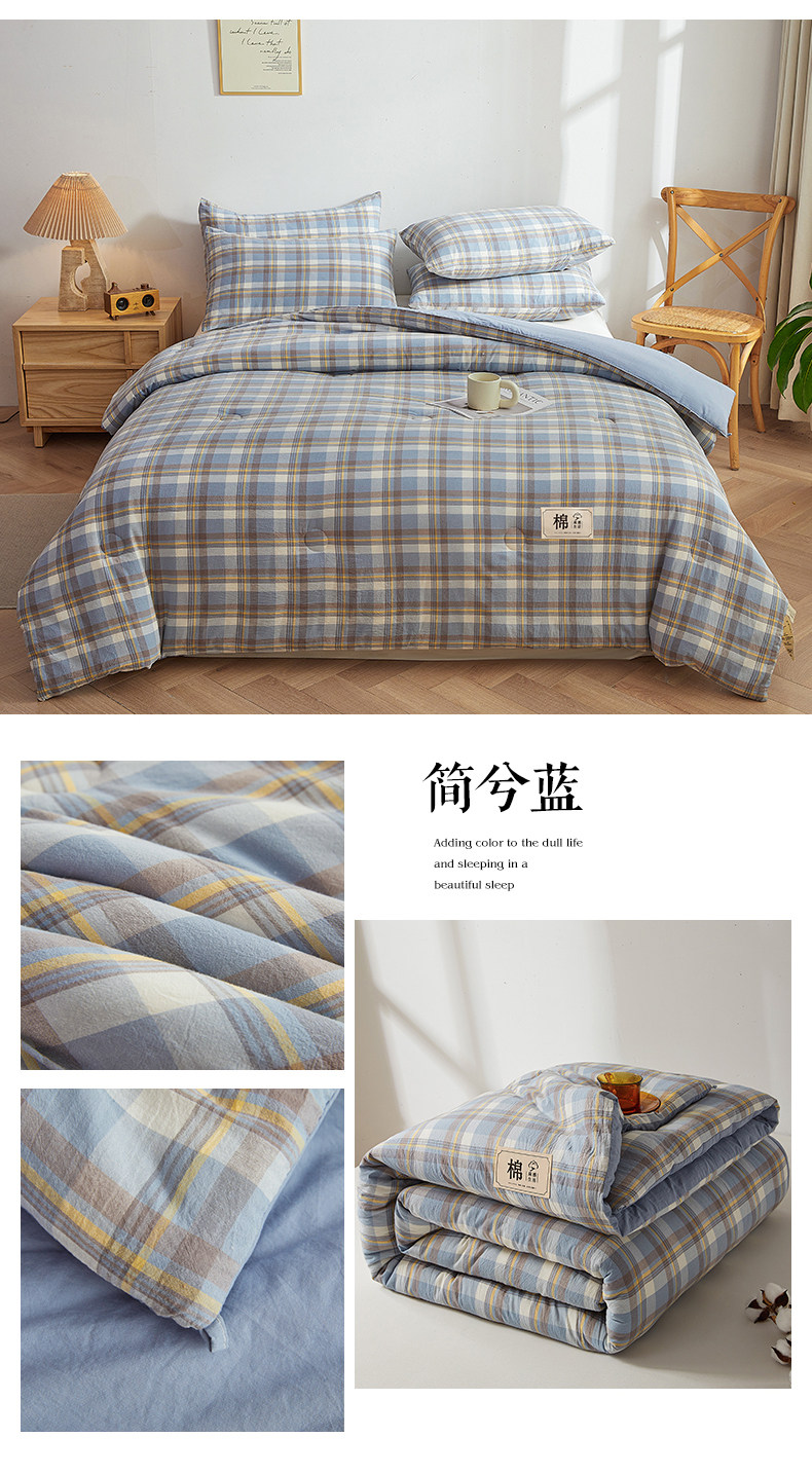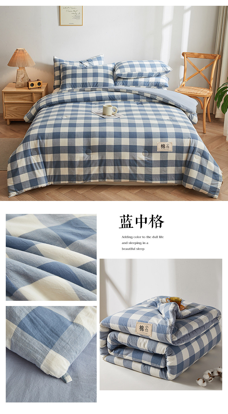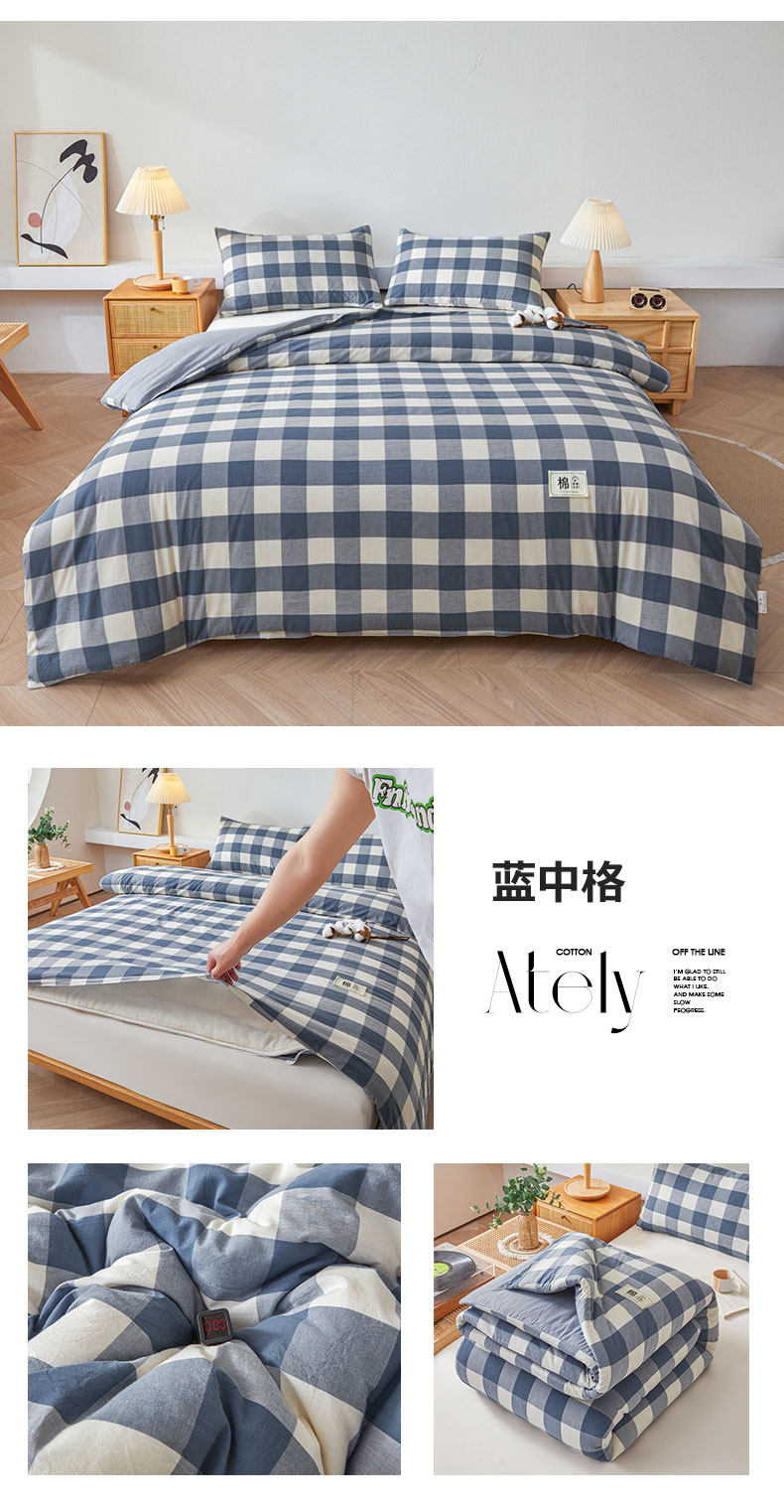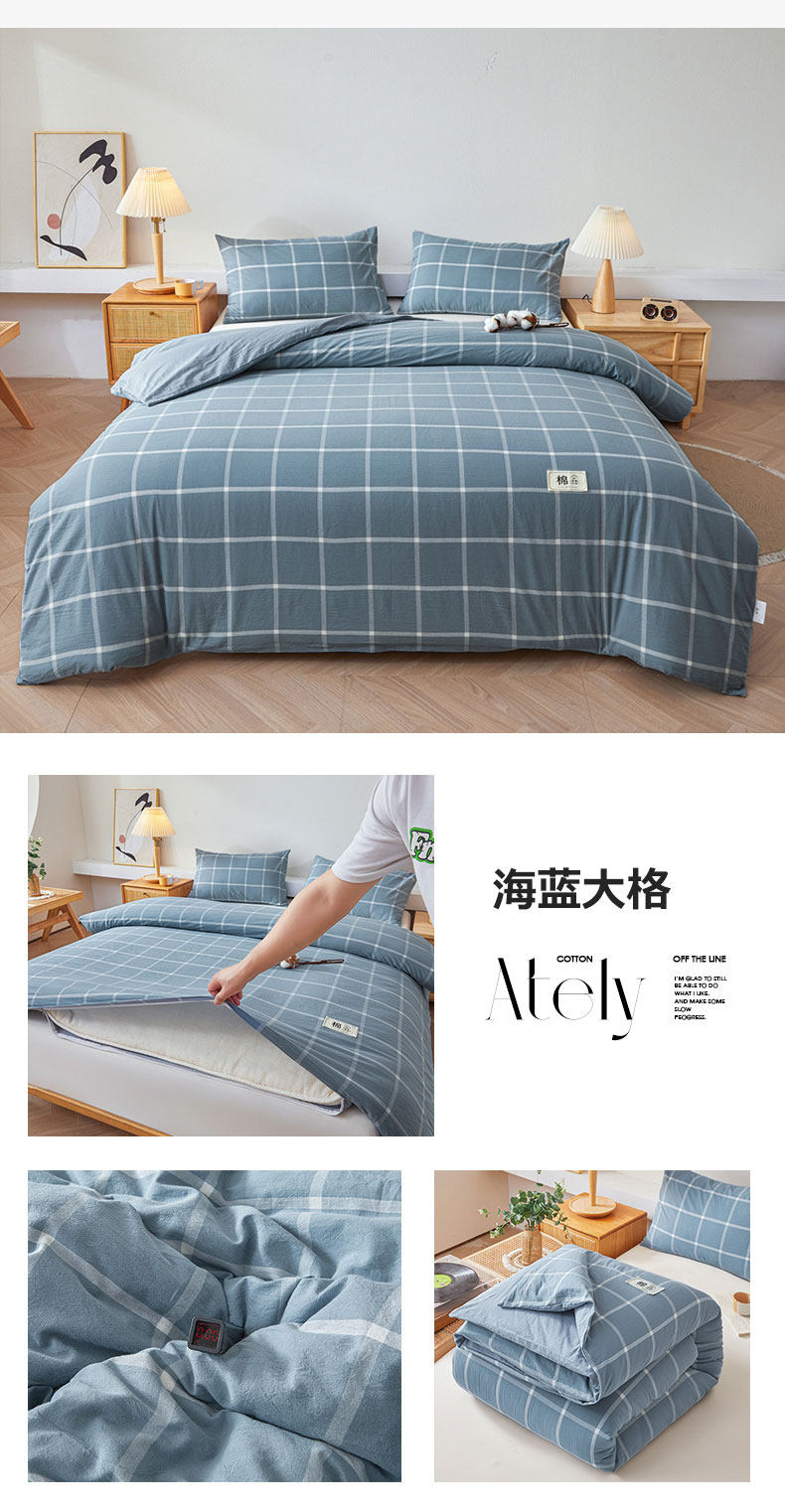 被套可拆款-蓝中格