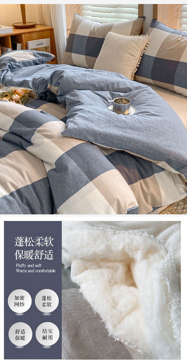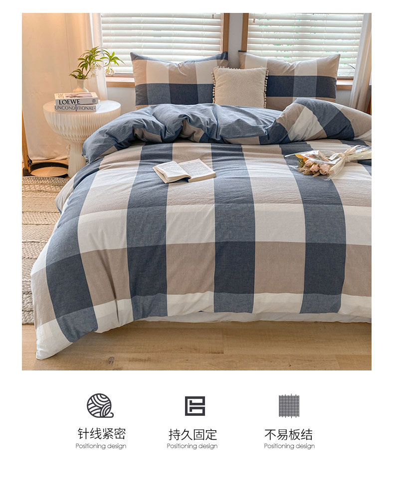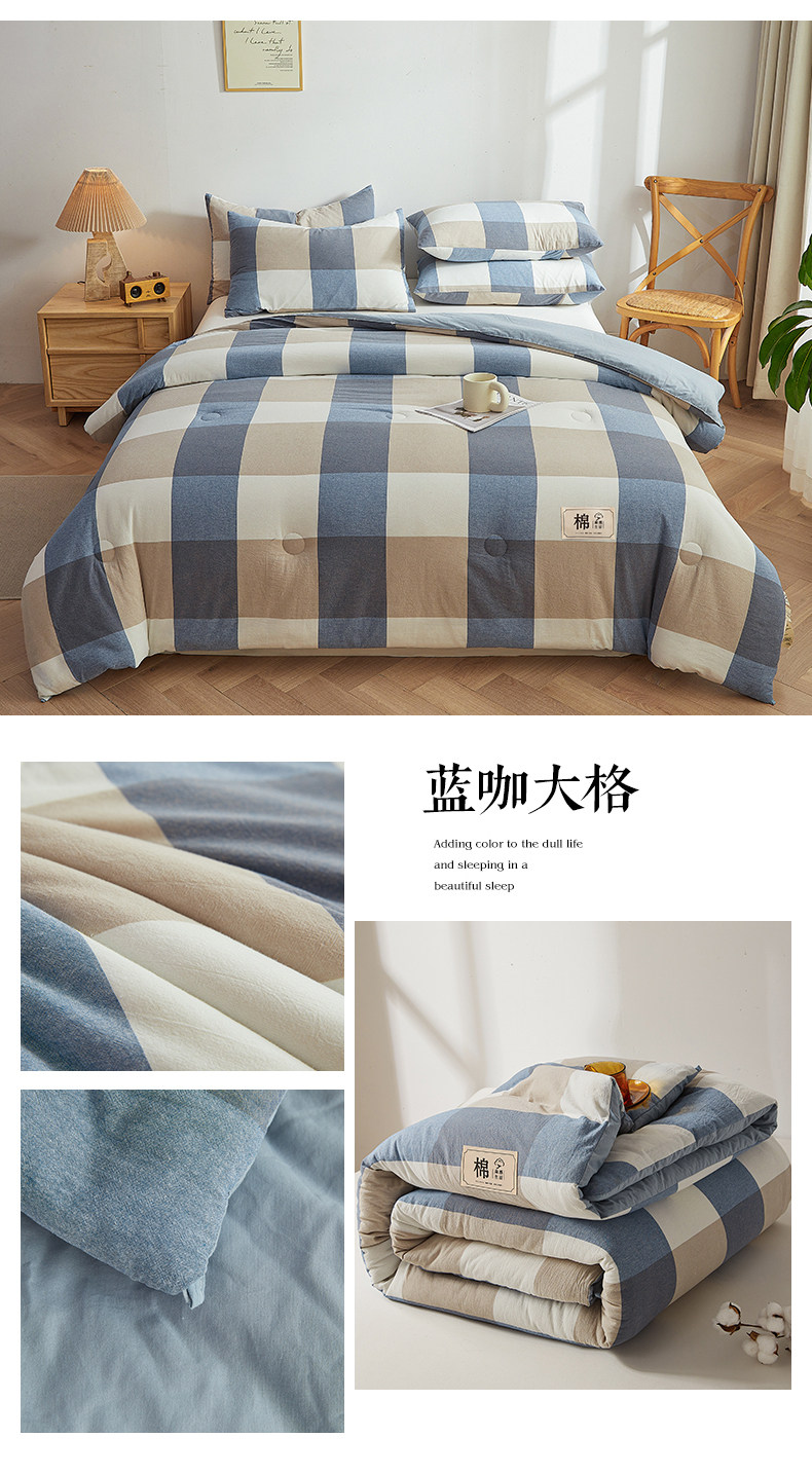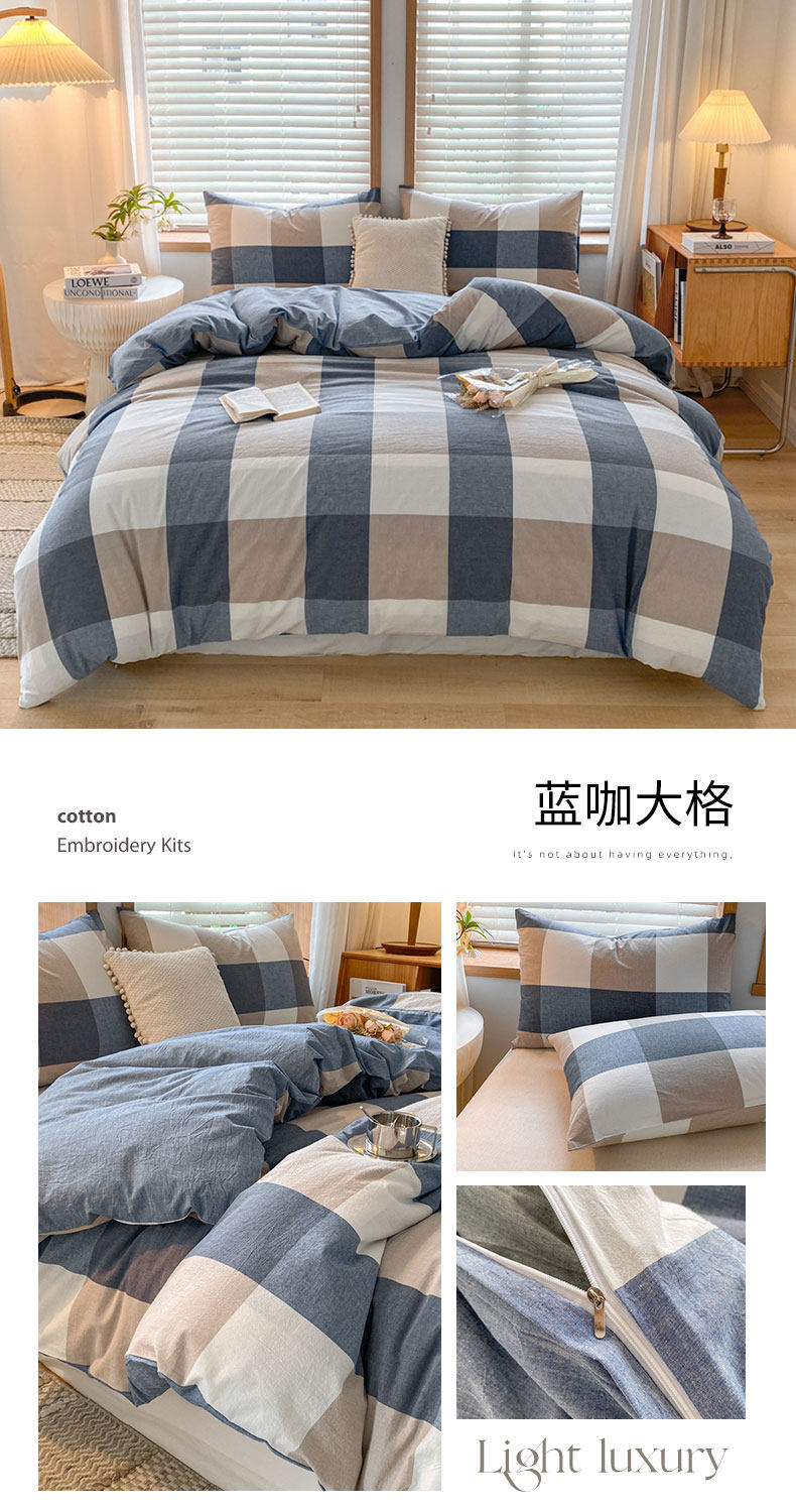 被套可拆款-蓝咖大格
