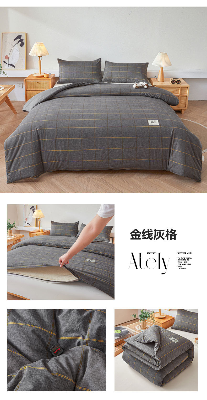 被套可拆款-金线灰格
