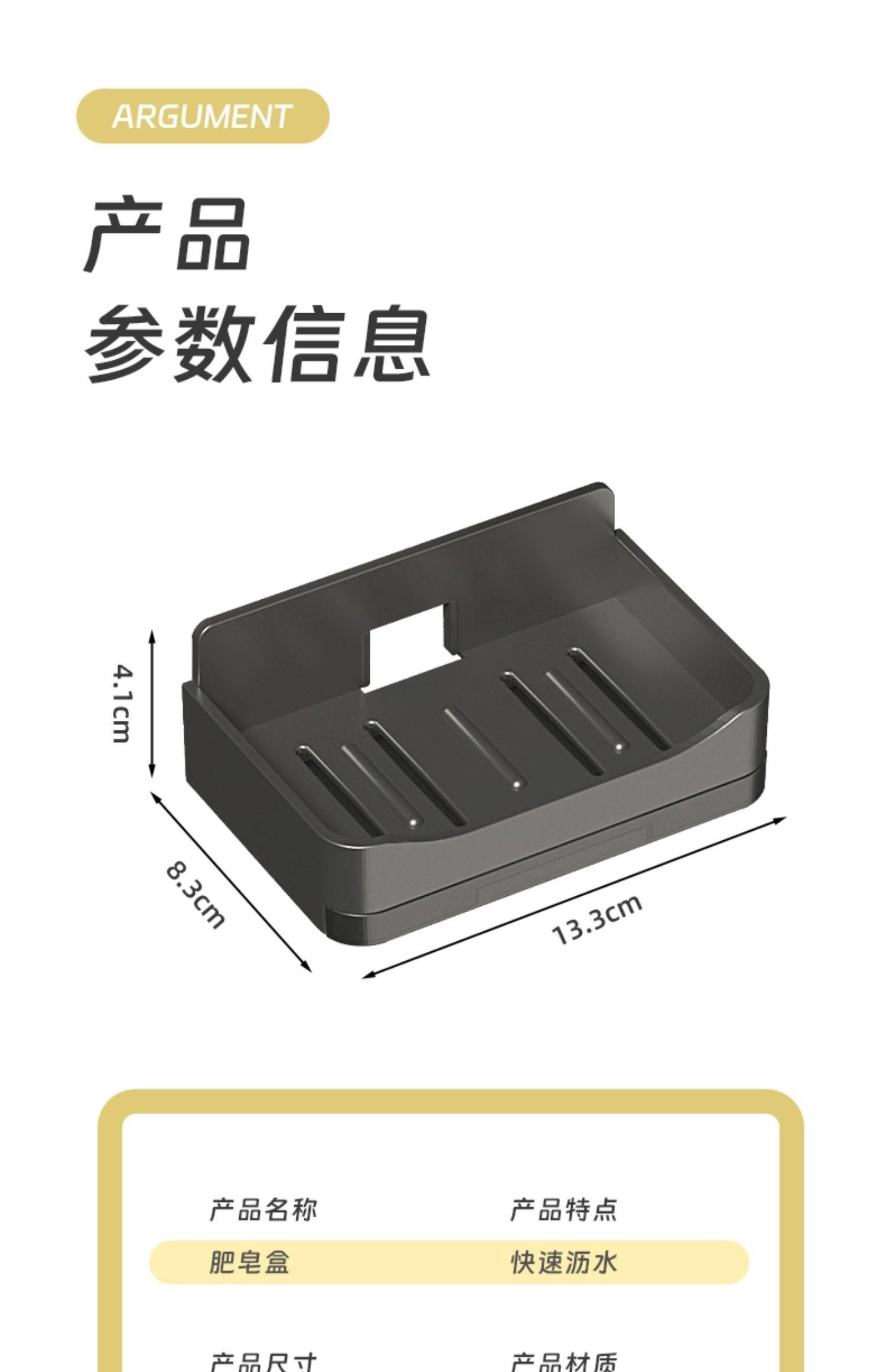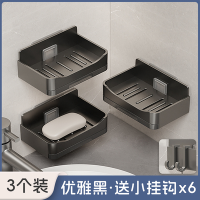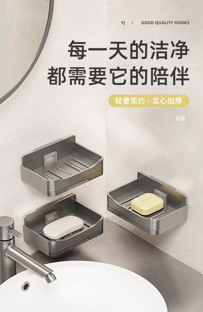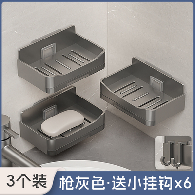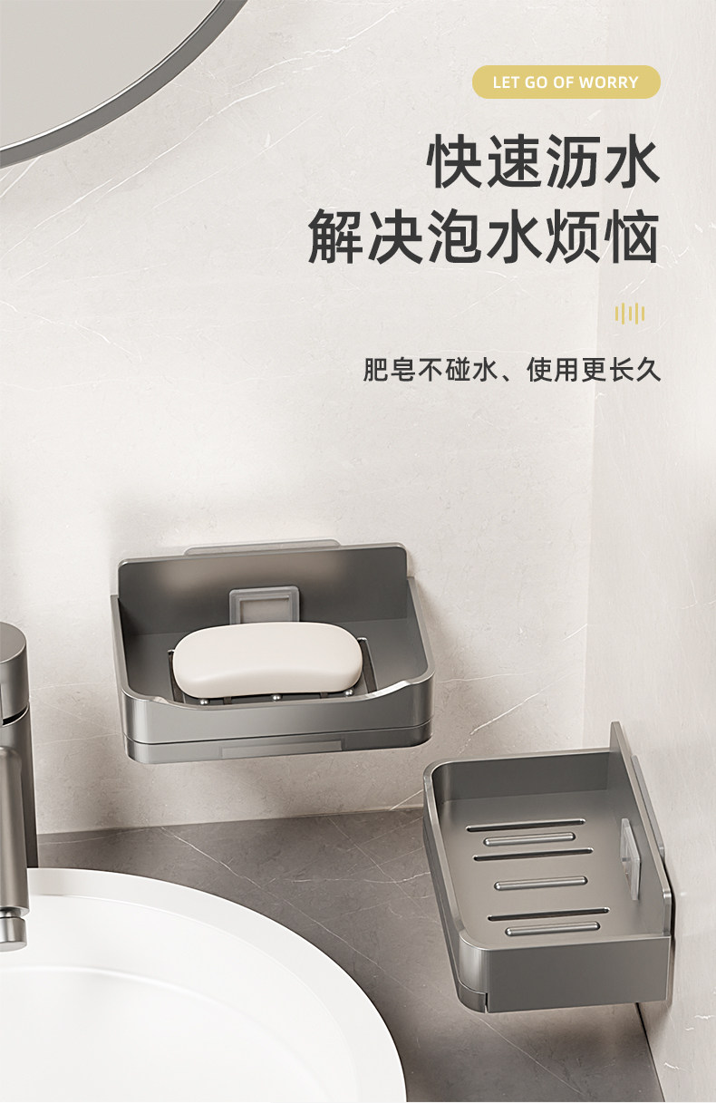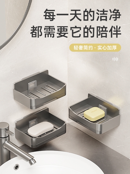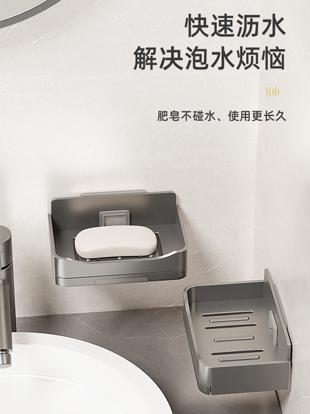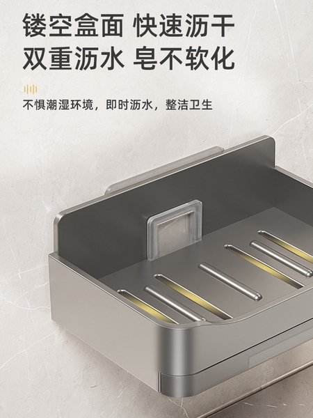 家用高档沥水肥皂盒香皂架卫生间上墙壁挂式双层皂盒免打孔置物架