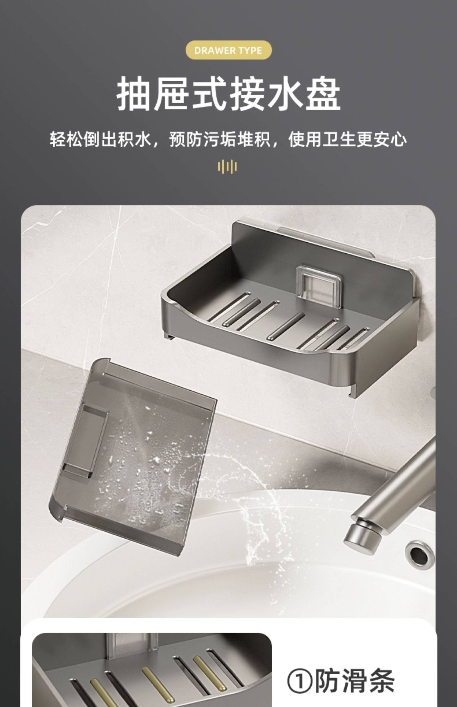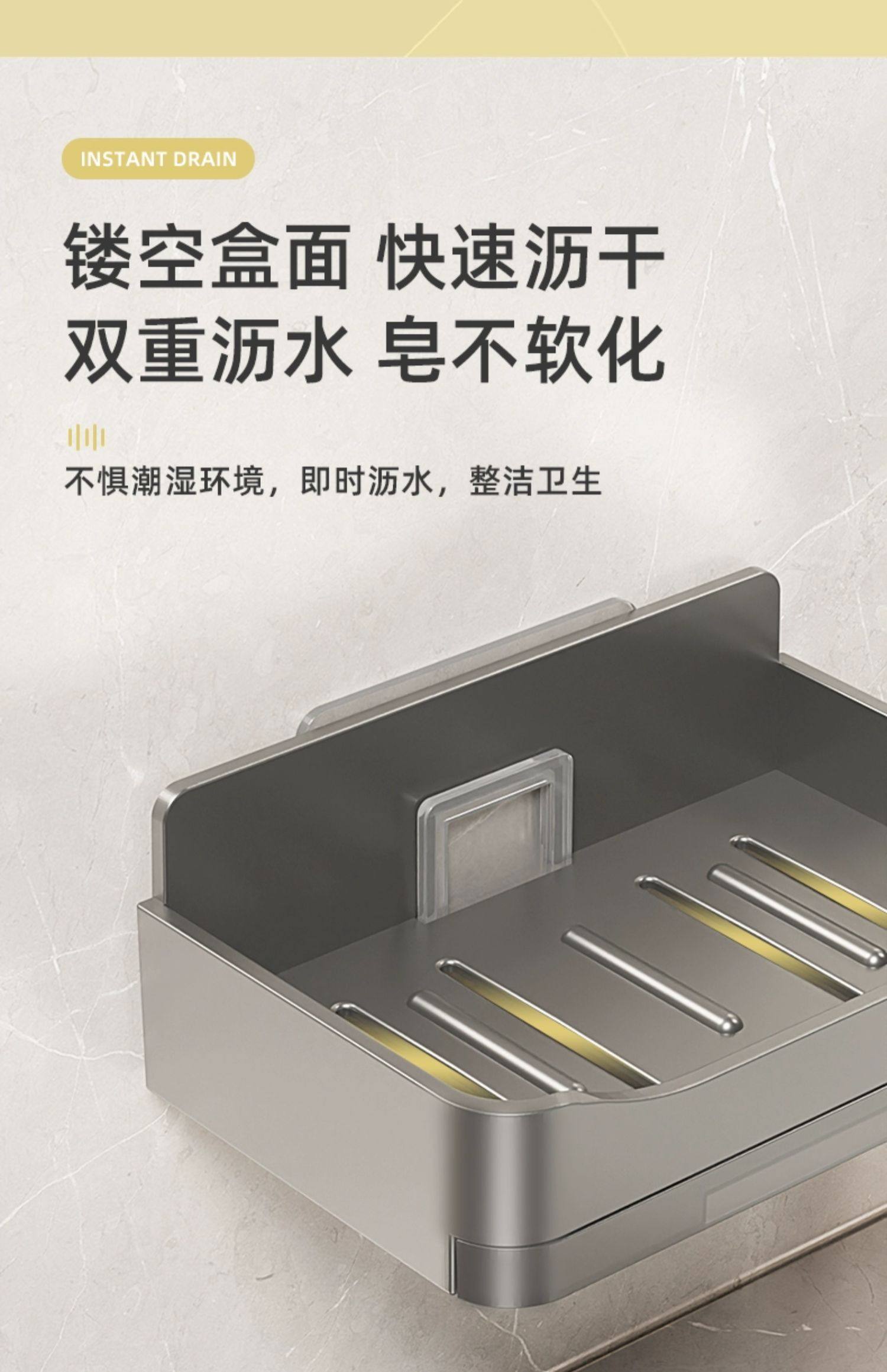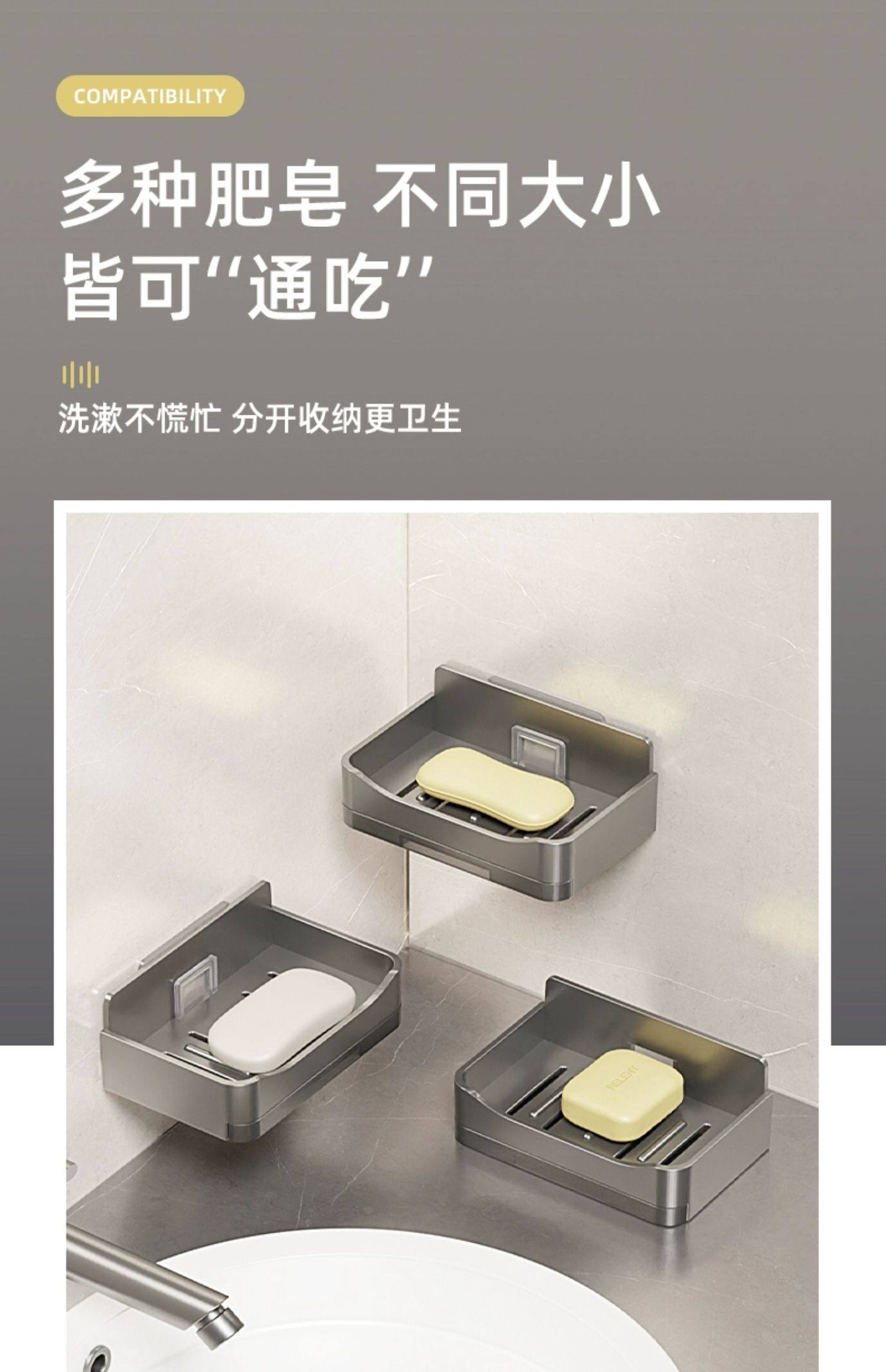 家用高档沥水肥皂盒香皂架卫生间上墙壁挂式双层皂盒免打孔置物架