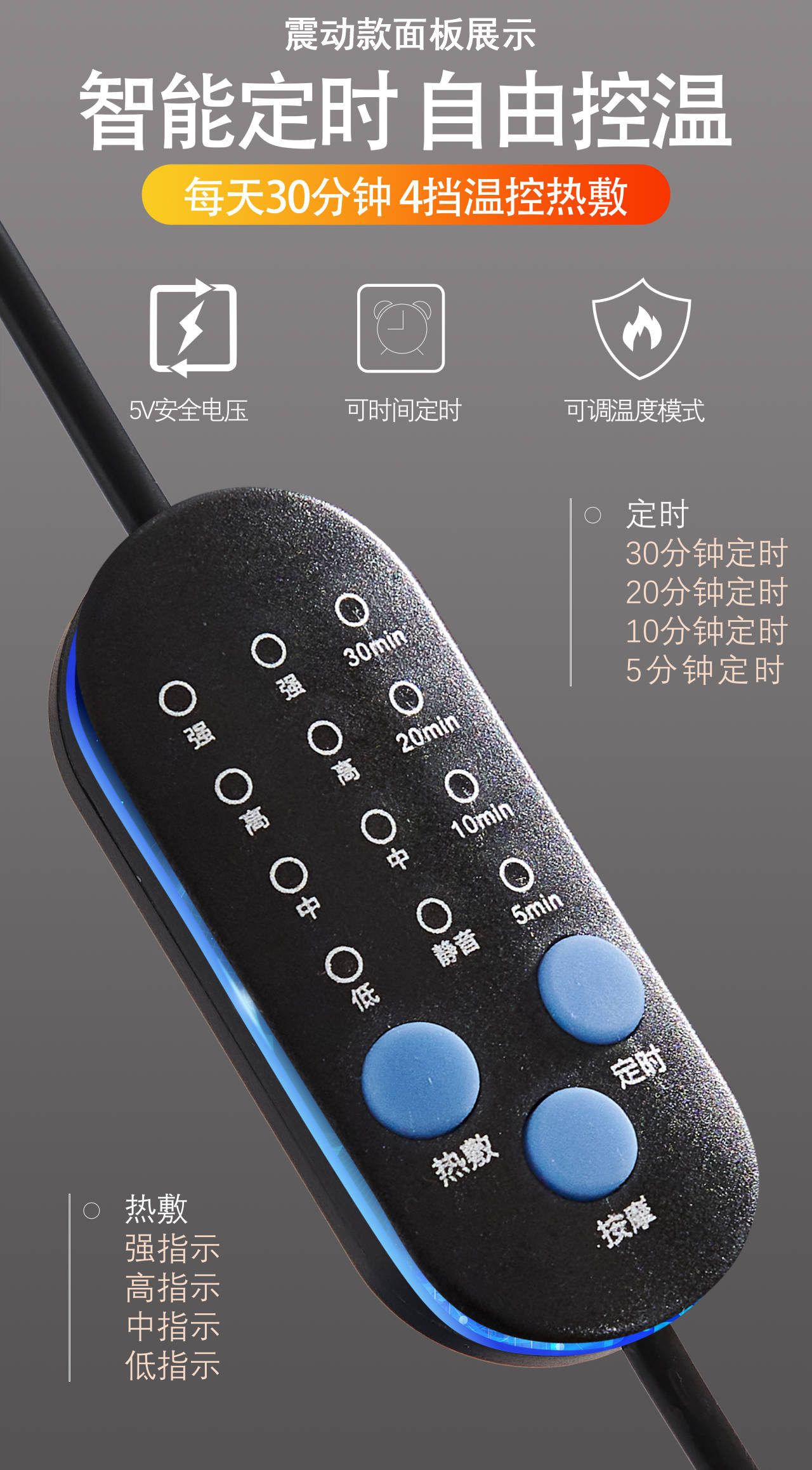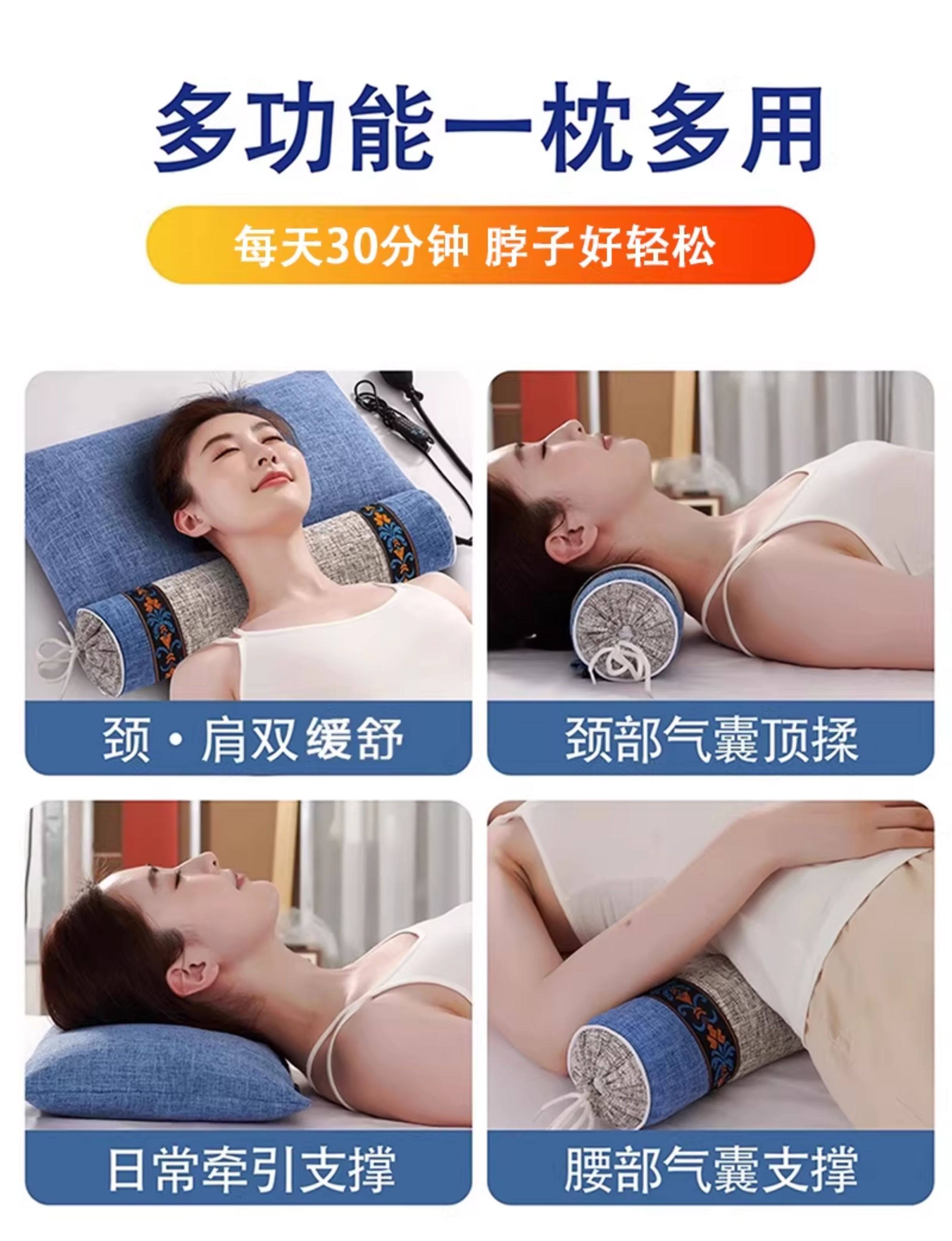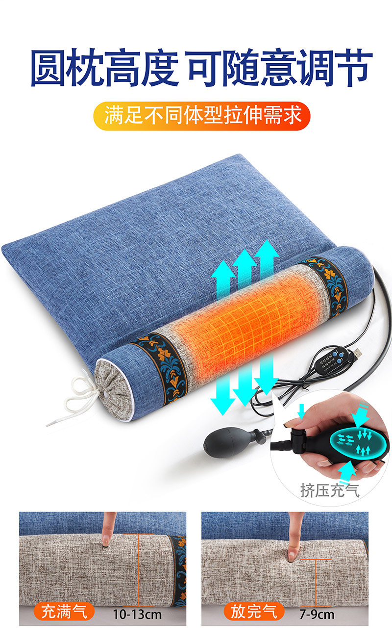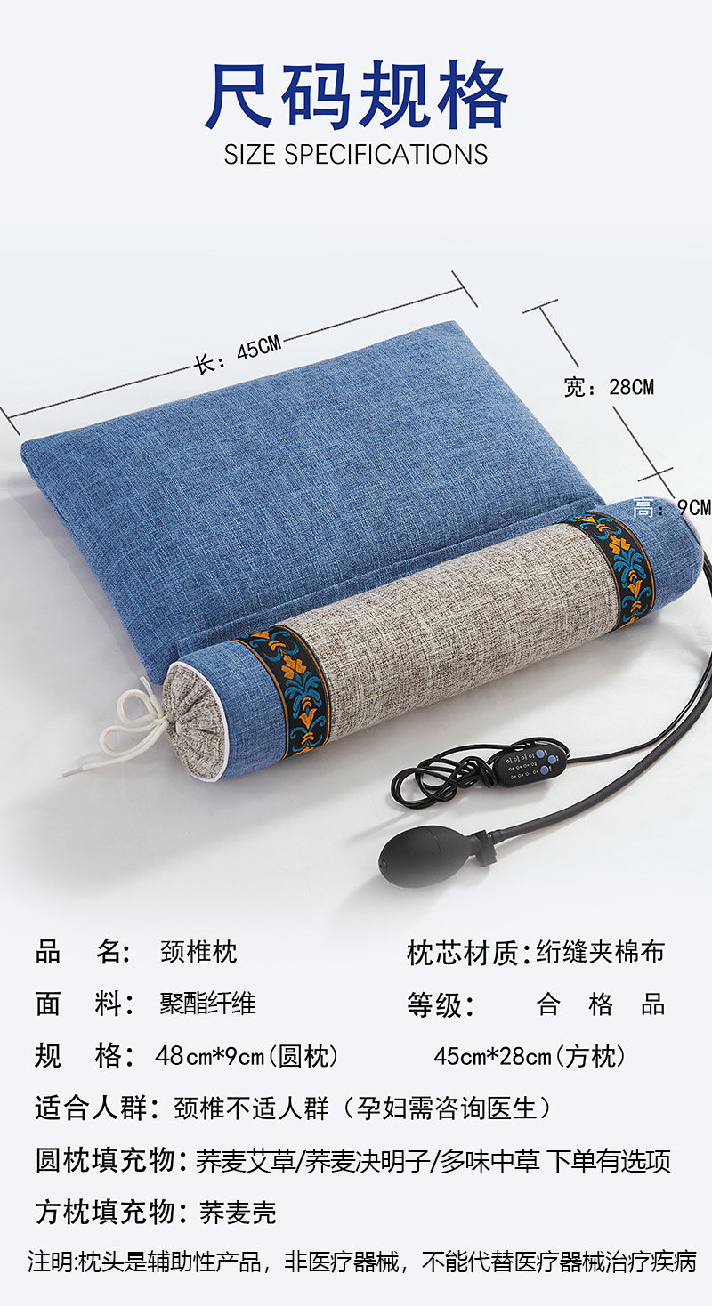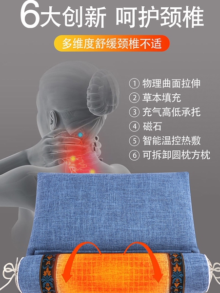 推荐》震动按摩热敷充气款-12味中草组合枕--新智慧蓝