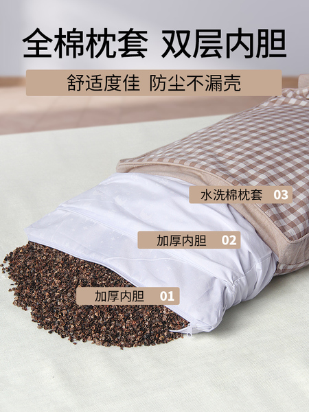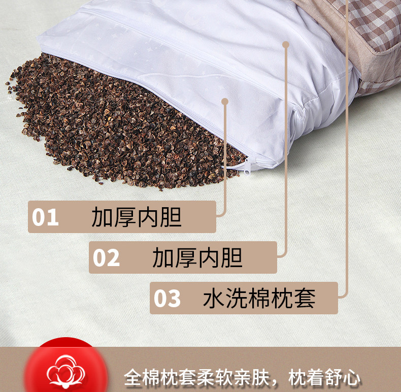 大号卡其色【高枕甜荞】双层内胆+水洗棉枕套+90级荞麦壳