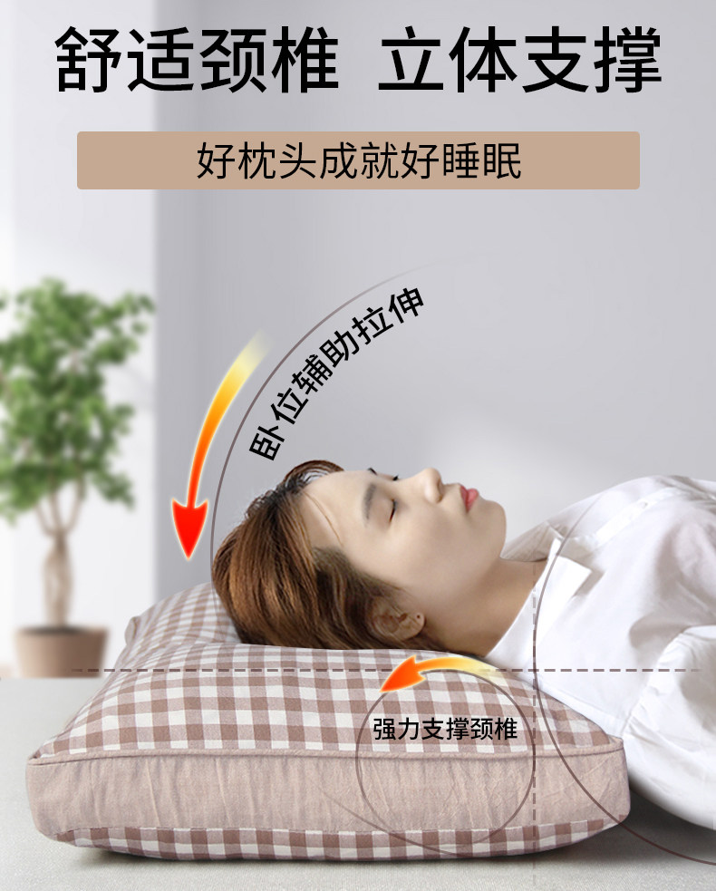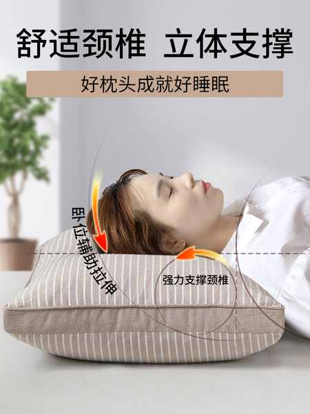 中号素黄条【高枕甜荞】双层内胆+水洗棉枕套+90级荞麦壳