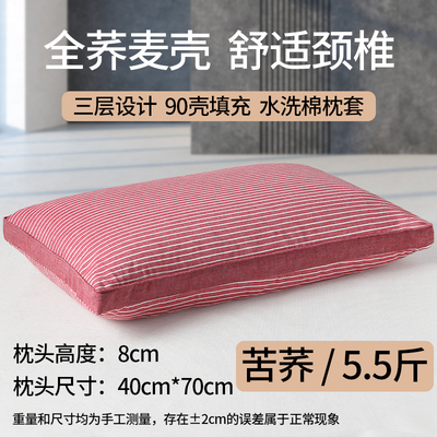 中号素红条【中枕苦荞】双层内胆+水洗棉枕套+90级荞麦壳
