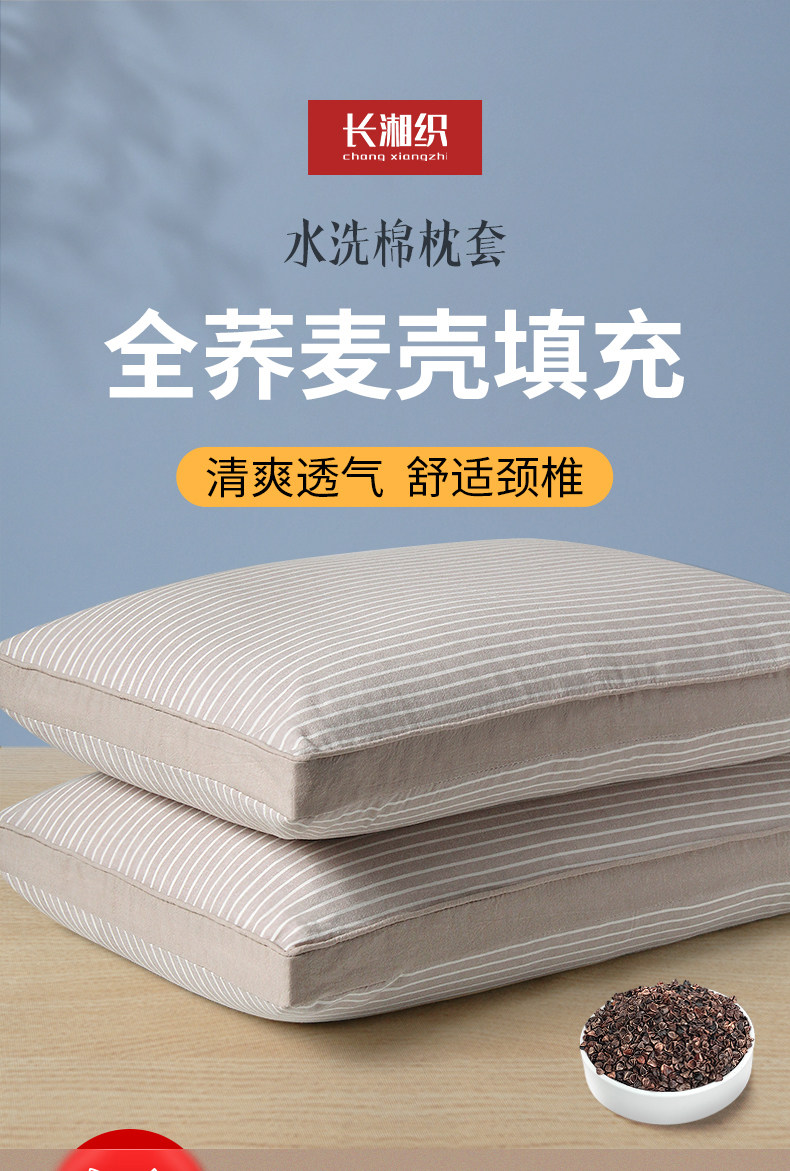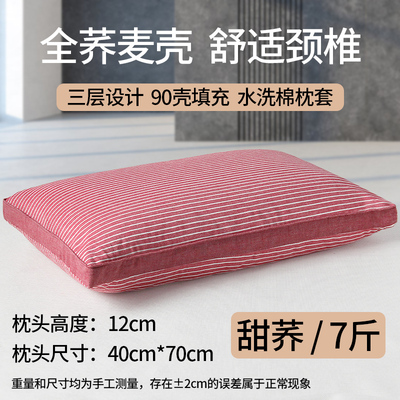 大号素红条【高枕甜荞】双层内胆+水洗棉枕套+90级荞麦壳