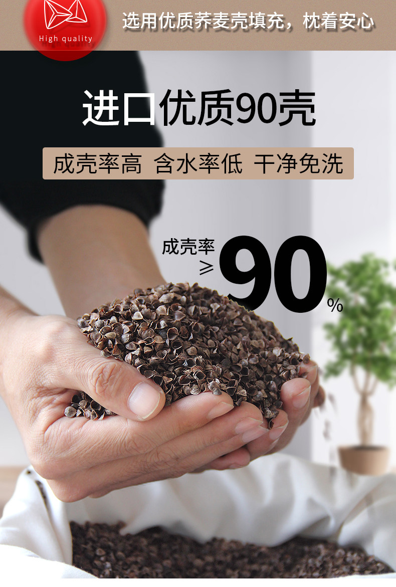 大号黑白【高枕苦荞】双层内胆+水洗棉枕套+90级荞麦壳