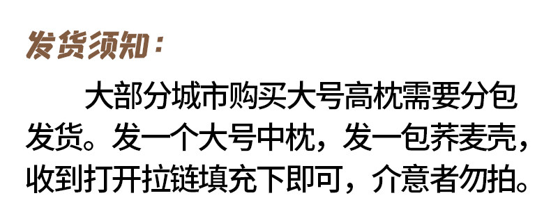 中号素黄条【高枕苦荞】双层内胆+水洗棉枕套+90级荞麦壳