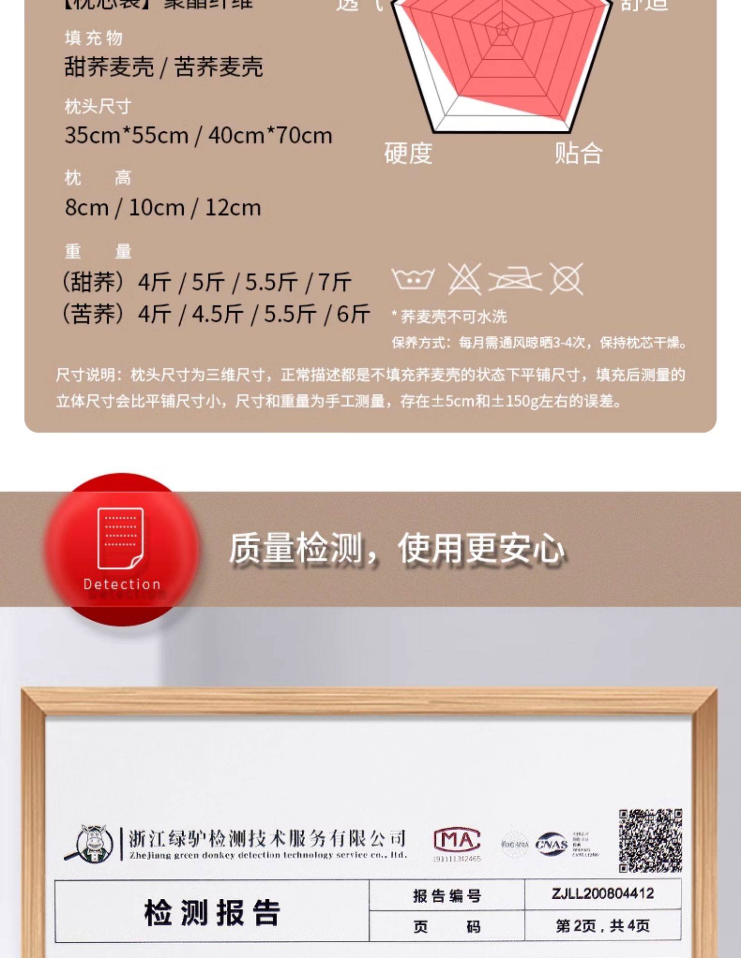 中号卡其色【高枕苦荞】双层内胆+水洗棉枕套+90级荞麦壳