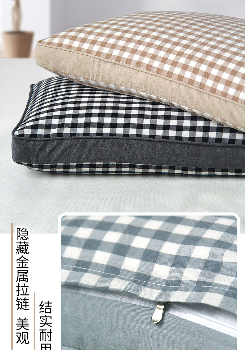 中号深蓝格【中枕甜荞】双层内胆+水洗棉枕套+90级荞麦壳