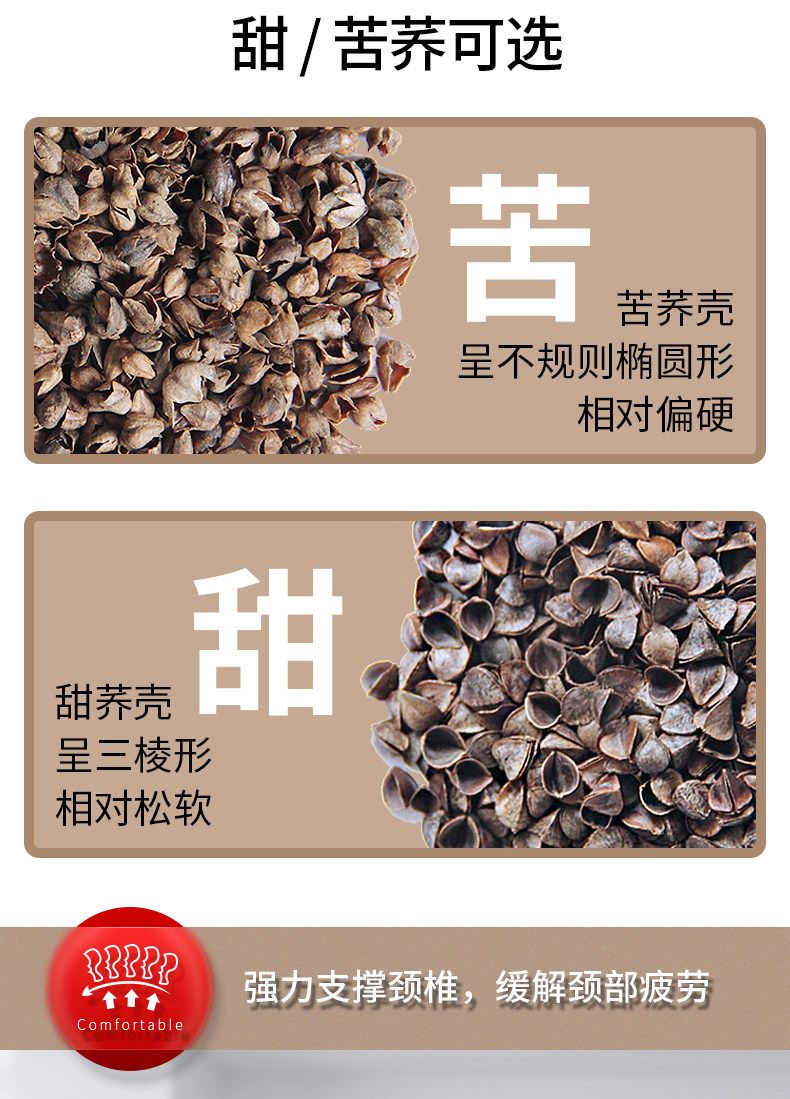 大号卡其色【高枕苦荞】双层内胆+水洗棉枕套+90级荞麦壳