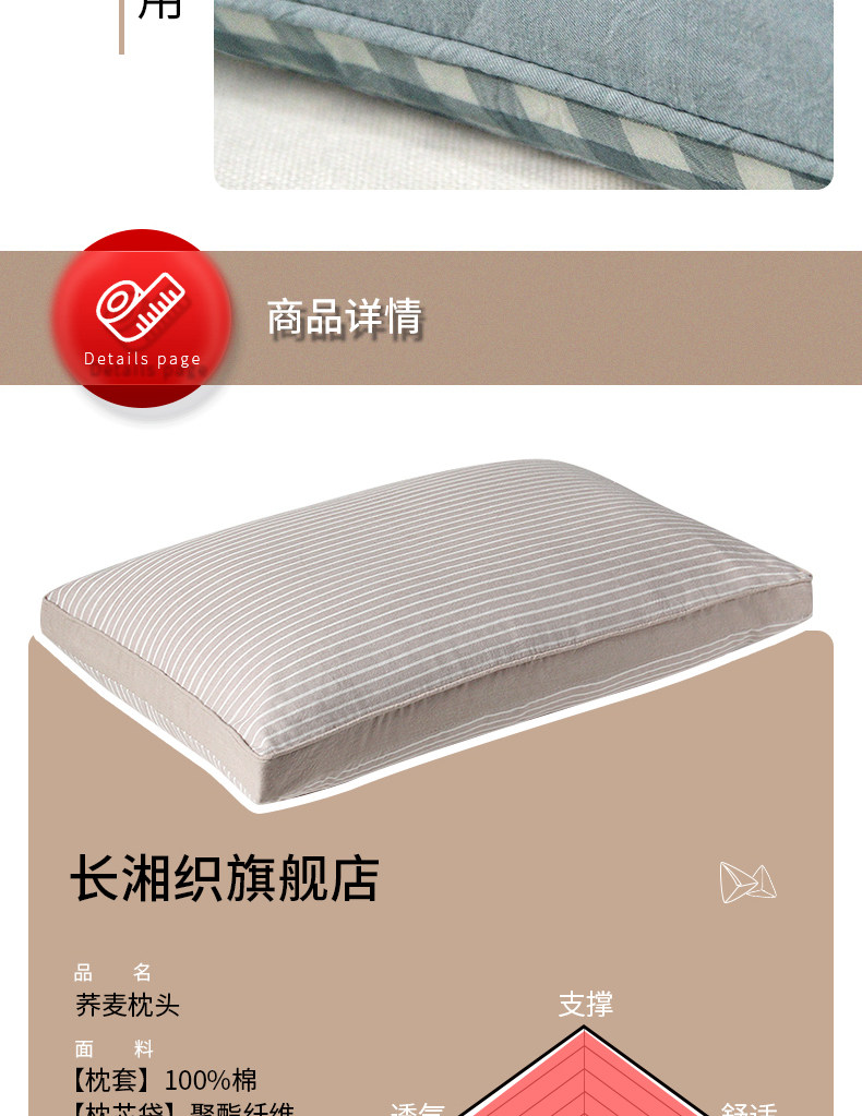 大号素红条【高枕苦荞】双层内胆+水洗棉枕套+90级荞麦壳