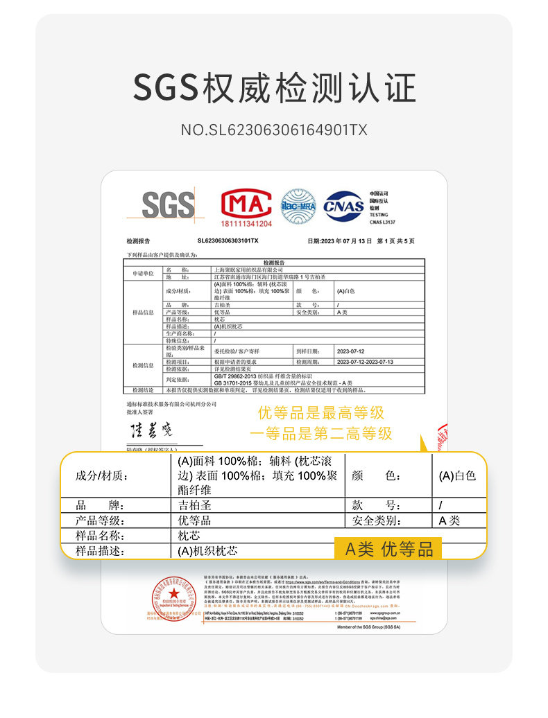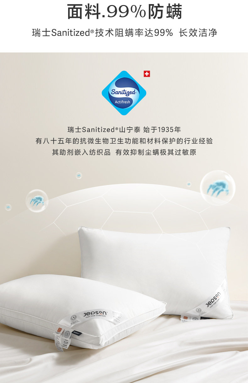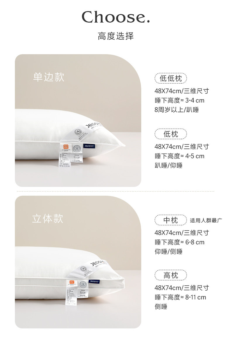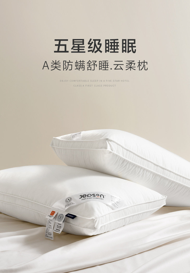 吉柏圣全棉面料酒店枕头枕芯防螨家用护颈枕成人单人枕一对拍2