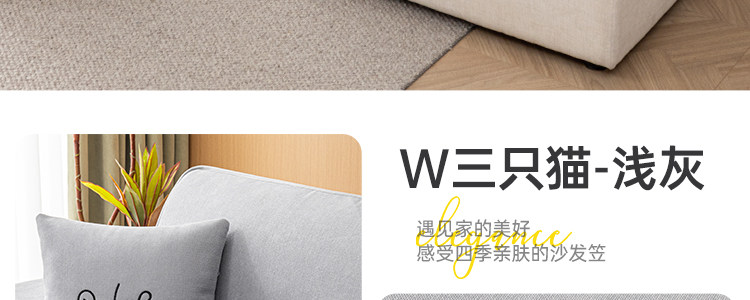 W三只猫(沙发套)-浅灰色【全包裹 免打理 防猫抓 不起球】